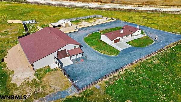 Beautiful acreage conveniently located just outside of town on a paved road! This spacious tri-level home features 4 bedrooms and 3.5 baths, a main-floor laundry, and a generous kitchen with stainless steel appliances. Just off the kitchen, a versatile room provides endless possibilities--it's ideal for an office, additional bedroom, formal dining space, or hobby room to fit your lifestyle. The primary suite offers a tiled shower and walk-in closet, while the south-facing windows showcase amazing views of the open pasture and expansive valley. The property also includes a well-equipped 40' x 90' shop with two 14' overhead doors, a concrete floor with built-in drain system, full insulation, and a 1,000 sq. ft. apartment featuring a half bath on the main level and one bedroom and one bath upstairs, plus a covered patio area. On the west side of the shop sits a 32' x 90' loafing shed, ideal for livestock or additional storage. Both the main home and shop have a new leach field, and the home received a new roof in 2023.