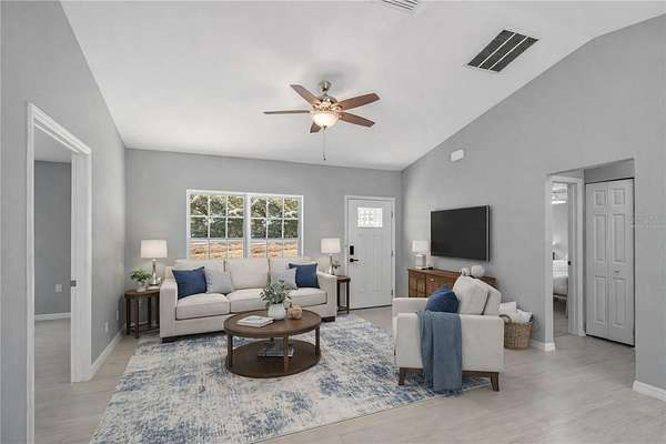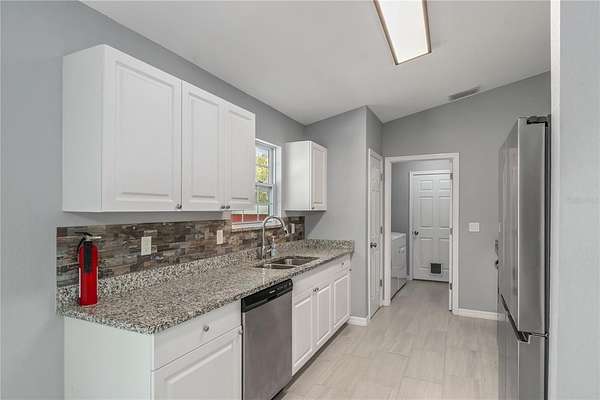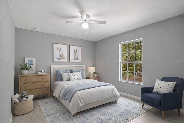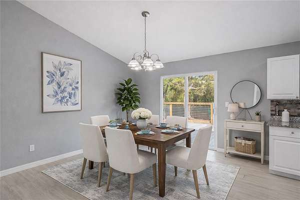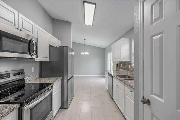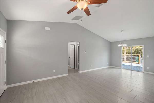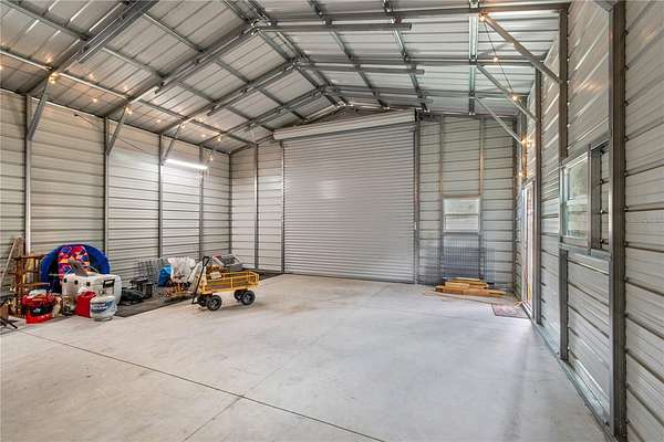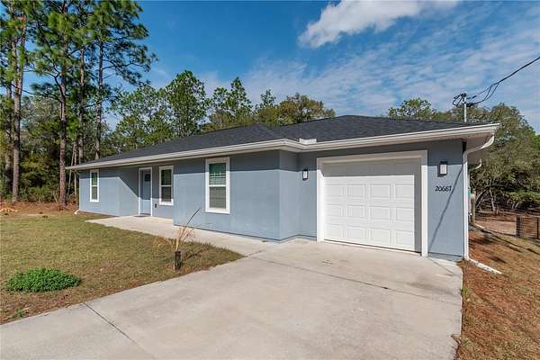 One or more photo(s) has been virtually staged. Nestled on an oversized lot with nearly 2-acres of space within Rainbow Acres, this like-new move-in ready home was constructed in 2022 and offers the perfect blend of modern comfort and outdoor opportunity. Offering a total of 3-bedrooms and 2-baths with 1,229 sqft of space, the home is thoughtfully designed for easy living and lasting durability. Inside, the home features porcelain tile flooring throughout, tall vaulted ceilings, and abundant natural light throughout. The living and dining rooms are incredibly welcoming, ideal for entertaining or everyday living. The kitchen is nicely designed with granite countertops, plenty of cabinet storage, stainless steel appliances, an additional pantry, and easy access to the laundry room. The primary suite is a comfortable retreat that features a walk-in closet and a well-appointed en-suite with a walk-in shower and modern finishes. Two additional guest bedrooms are in place, with plenty of potential for use as a home office or hobby space if desired. A sliding glass door in the living area opens up to the spacious rear TREX deck which was built in 2024, the perfect place to enjoy evening gatherings, a morning coffee, or simply enjoy peaceful views of the backyard. For those needing workspace, storage, or room for projects, the brand-new 26x80' workshop is a standout feature complete with reinforced concrete slab that could hold a lift. This impressive structure provides abundant space for equipment, vehicles, hobbies, or business needs, making it an exceptional addition to the property. Located just a short drive from Rainbow Springs State Park, the Rainbow River, the Goethe State Forest, and the town of Dunnellon, this property offers easy access to a variety of outdoor recreation without losing convenient access to a variety of shopping, dining, and entertainment options. Both Ocala and Gainesville are a scenic commute away, opening up even more options for those looking to get the most out of North Central Florida. This move-in ready home combines modern construction, generous land, and a substantial workshop—an ideal opportunity for those seeking space, functionality, and proximity to one of Florida’s most treasured natural destinations!