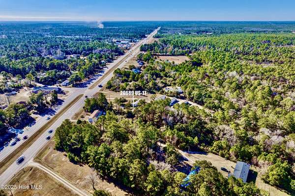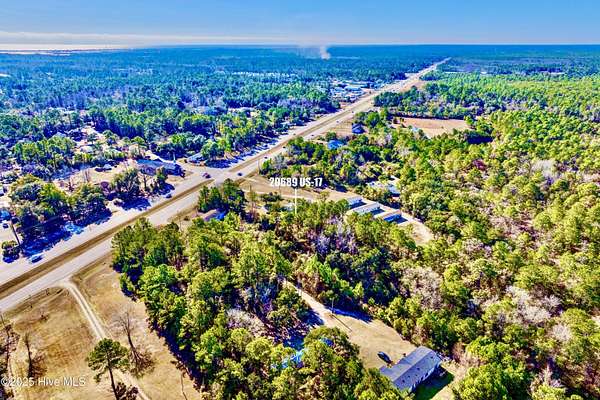 1.98 Acres of PRIME land on US HWY 17 with visibility and versatility! Unbeatable Location (which the Bypass completion will further increase), Income Producing Rental & Prime Development Potential. High and Dry, no wetlands or elevated flood hazards identified. Property Features Prime Location: - High visibility Location - 1 mile North of the the last Hampstead Bypass Interchange (NCDOT project well underway) - 2 miles South of US Intersection 17/ Hwy 210 East (Surf City Lowes/ Harris Teeter) - 9 miles from the Surf City Bridge leading to the beautiful beaches of Topsail Island. - 9 miles from Wilmington Zoning and Potential: - Currently zoned RA residential, with adjacent RP, GB, and OI property zoning offering future development potential. - Long-term tenant in place in one of the three mobile homes on the property, providing rental income. Month to Month lease with 45 days notice needed vacate. Utilities and Infrastructure: - Two (2) Mobile homes -- 2 County Water Tap Connections -- 2 Septic Systems -- 2 Electric Connections - 3rd Mobile Home - unknown utilities - Well in front right of property hasn't serviced the property since County Water connection. Land and Environment: - No flood hazard zone and no known wetlands, making it ideal for development. - The property boasts beautiful, soaring live oak trees, creating a serene and picturesque setting. Hampstead is booming! 2020 Census shows a 71.1 percent pop growth, while Surf City saw a 108 percent increase. Growth continues with Hampstead experiencing 28 percent and Surf City 30 percent increases since 2021. Significant opportunity for investors, developers, or anyone seeking a prime location with immense potential. The Bypass currently nearing completion will only further enhance visibility and accessibility, connecting this centrally located property to Wilmington, Wrightsville Beach, Leland and beyond.