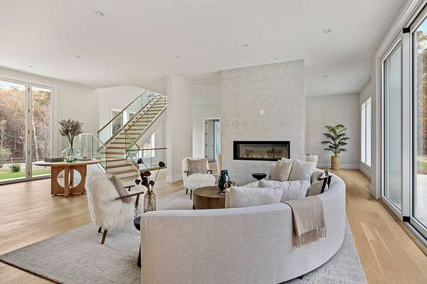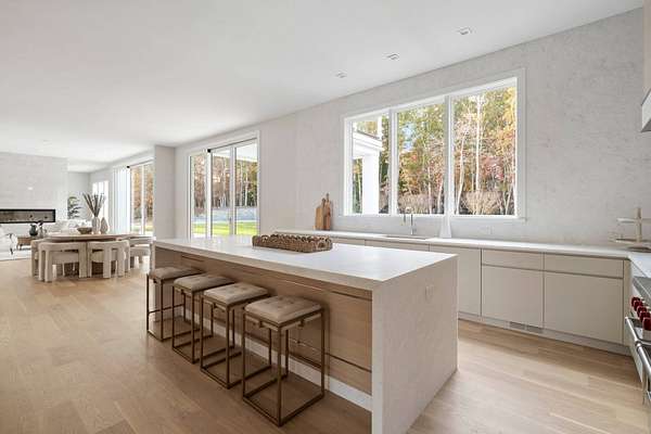 Welcome to your dream retreat in the heart of the Hamptons! This newly constructed luxury residence at 2069 Deerfield Road, designed by seasoned architects McDonough & Conroy and built by Barsalin Building and Design, offers a modern take on Hamptons living. Spanning 9,124 square feet, this expansive home sits on a private, beautifully landscaped property in sought-after Sag Harbor, combining contemporary design with resort-style amenities. The home boasts 8 en-suite bedrooms and 9 full baths, each carefully designed for privacy and comfort. Both the first and second floors feature full primary suites, each with two walk-in closets. The primary and junior primary bathrooms offer luxury touches such as heated floors, double vanities, soaking tubs, and separate water closets. Additional closets throughout the home are equipped with built-in shelves. The heart of the home lies in its gourmet kitchen and prep kitchen, where white opal marble countertops complement a Wolf 8-burner range with two ovens, Sub-Zero refrigerators, two dishwashers, a wine fridge, and a Wolf microwave. With two sinks and built-in speakers, this kitchen is ideal for both casual dining and large-scale entertaining. Adjacent to the kitchen are the family room, breakfast room, and formal dining area, all boasting 11-foot ceilings, 10-foot sliding doors, and 7-inch white oak flooring, creating an open and airy atmosphere. The living room features a striking see-through porcelain slab fireplace, adding warmth and elegance to the space. On the lower level, you'll find an additional 2,907 square feet dedicated to wellness and entertainment. This includes a gym with porcelain tile flooring and a black rubber floor, a sauna, a massage room, a yoga studio, and a full bath. A recreation area and a carpeted theater room provide endless options for relaxation and fun. Two en-suite guest bedrooms on this level offer plush carpeting and private spaces for visiting family or friends. Outside, the beautifully landscaped grounds are designed for relaxation and entertaining. A sparkling pool and spa are surrounded by porcelain tile, with a mahogany deck featuring glass balcony railings overlooking the space. The pool house includes a kitchenette, fridge, dishwasher, and a full bath for ultimate convenience. For outdoor dining, the built-in kitchen comes equipped with a grill, smoker, and outdoor speakers, all fueled by a propane line. The property also includes a pickleball court and a two-car garage with glass doors. This luxurious estate is equipped with Marvin windows and doors imported from Greece, including the stunning front door. The home features a central vacuum system, town water, propane, and LG washer and dryer units on both the first and second floors for added convenience. Nestled in a serene setting, 2069 Deerfield Road offers the perfect balance of privacy and proximity to everything the Hamptons has to offer. Indulge in the elegance and sophistication of this modern Hamptons retreat, where luxury living meets thoughtful design.