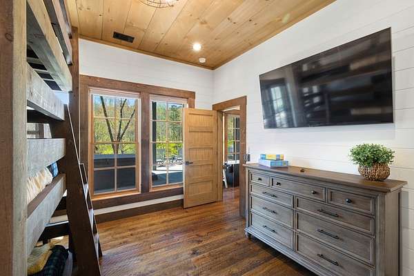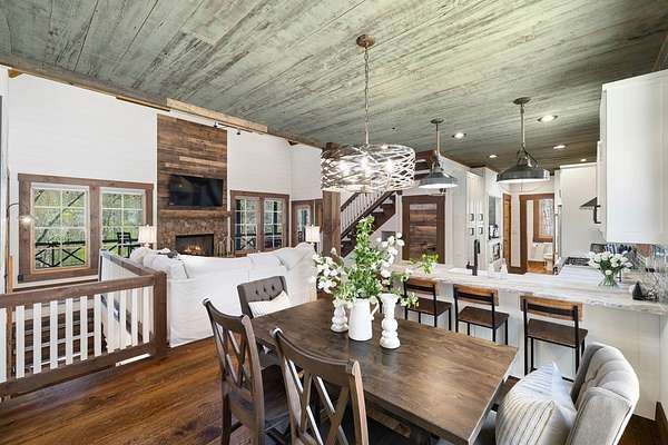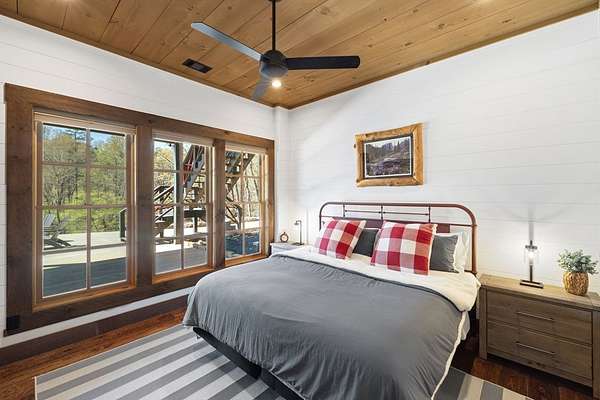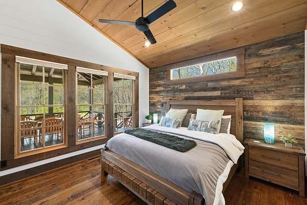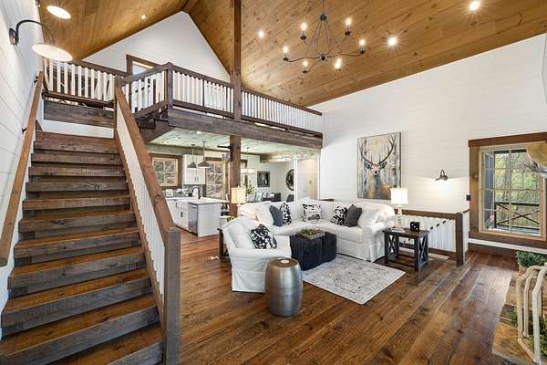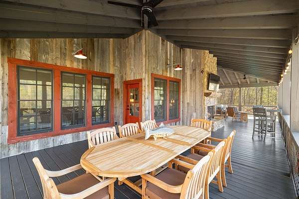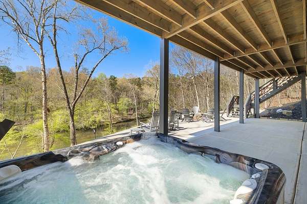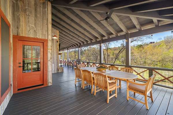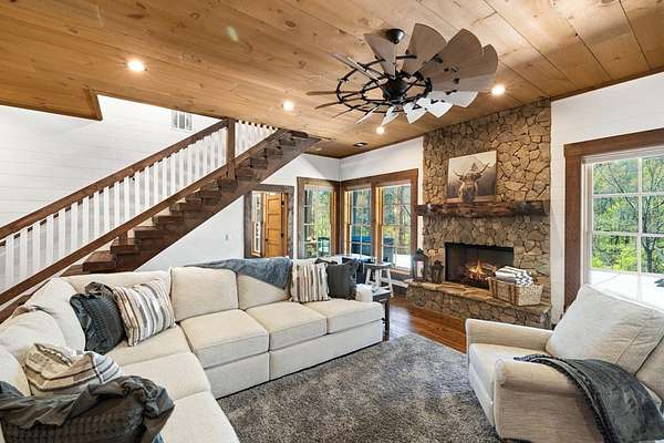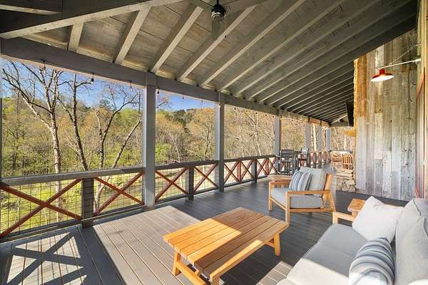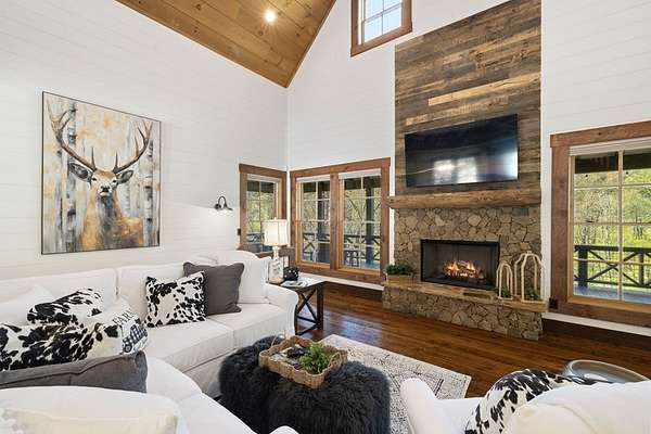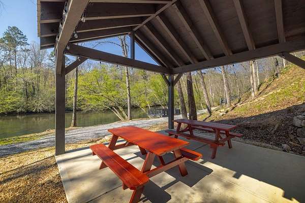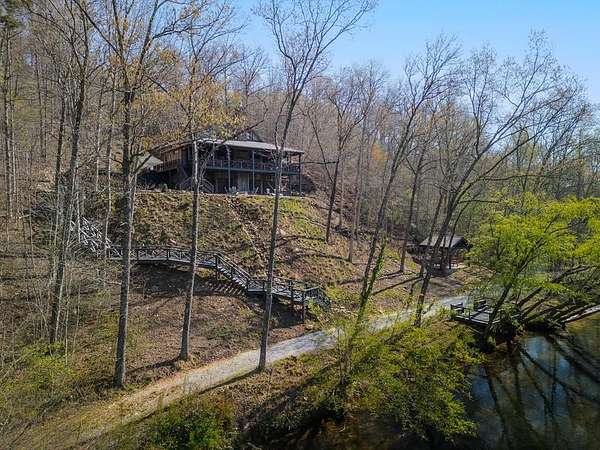 Perched along the pristine banks of the Toccoa River, this remarkable and truly one-of-a-kind retreat offers the perfect blend of luxury, privacy, and natural beauty. Boasting over 200 feet of coveted river frontage, this exceptional property provides unobstructed, year-round views of the water from every level of the home's rear-facing living spaces. Set on 4.93 private acres across two lots, the property ensures ultimate seclusion while offering future potential. The additional lot features seasonal mountain views and is already permitted for a small septic system, ideal for a guest home or investment opportunity. Enjoy easy access with all paved roads leading to a gated, paved driveway. Crafted with character and timeless appeal, the home's exterior showcases over 100-year-old reclaimed grey hemlock, creating a warm, rustic elegance that blends seamlessly with its surroundings. Outdoor living is truly unparalleled, featuring expansive wraparound decking, a covered deck with a cozy outdoor fireplace, and a lower-level deck complete with a fire pit. Down by the river, a newly built covered gazebo and additional deck provide the perfect setting for relaxing, entertaining, or enjoying the peaceful sounds of flowing water. Inside, the thoughtfully designed layout offers four spacious bedrooms, each with a private en-suite bath and generous closet space. An open loft provides flexibility for additional sleeping quarters or a dedicated office space. The home is designed for both comfort and functionality, with ample storage, a well-appointed pantry, and inviting dining and living areas throughout. Modern conveniences meet mountain charm with fiber optic internet. This home is being sold furnished with high-end dcor and fixtures, making it truly move-in or rental ready. A rare opportunity to own a luxury riverfront retreat in the heart of North Georgia, where privacy, craftsmanship, and breathtaking natural surroundings come together!