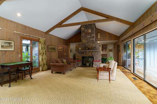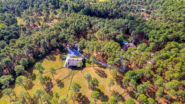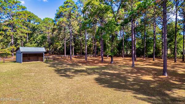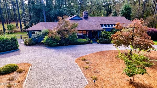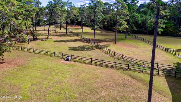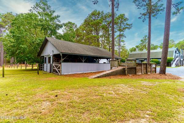 In and Out Farm - a private equestrian oasis in the heart of Southern Pines Horse Country! Set on 24 acres, this property offers peace, privacy, and a thoughtfully designed, fully functional facility suited to a wide range of equestrian pursuits. The inviting ranch-style home features a split floor plan with vaulted ceilings, warm wood accents, and equestrian-inspired finishes throughout. Built by a horse person, the home showcases custom tile work and a stunning mural of the Moore County Hounds by the late Danila Devins, a beloved local artist. The spacious back deck overlooks the pool and pond, creating the perfect spot for outdoor entertaining or quiet relaxation. The lower level includes a large flex room and full bath, ideal for a home gym or an office. The barn is the centerpiece of the property with 7 stalls, including a double-sized foaling stall, some with turnout access to multiple paddocks. The tack room features a private bath and office, while the upper level includes a 1,400 sqft, 2-bedroom, 2-bath apartment complete with an enclosed porch overlooking the paddocks-perfect for guests, staff, or additional income. Equestrian amenities include a fenced grass riding arena, large paddocks with run-in sheds, and an equipment barn ideal for tractor and trailer storage. The location is unmatched, offering access to the 4,000+ acre Walthour-Moss Foundation, where riders can enjoy miles of scenic trails, bridges, water crossings, and hunt fences for endless hours of riding and training. Whether you're seeking a professional training operation, a boarding facility, or a private estate, In and Out Farm offers it all-combining functionality, beauty, and the best of Southern Pines equestrian living.