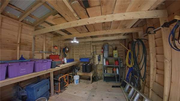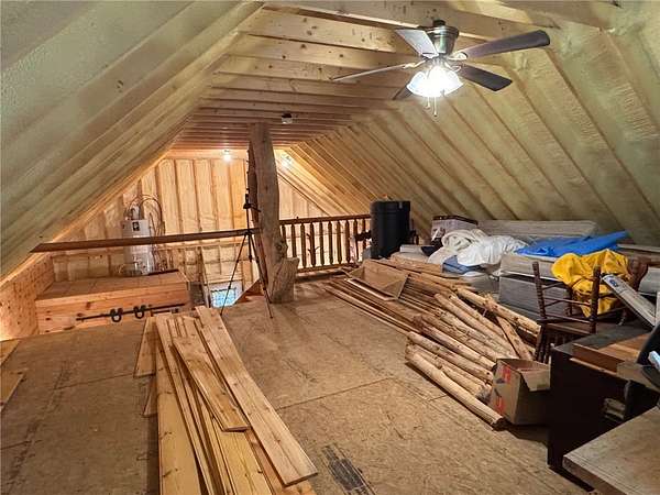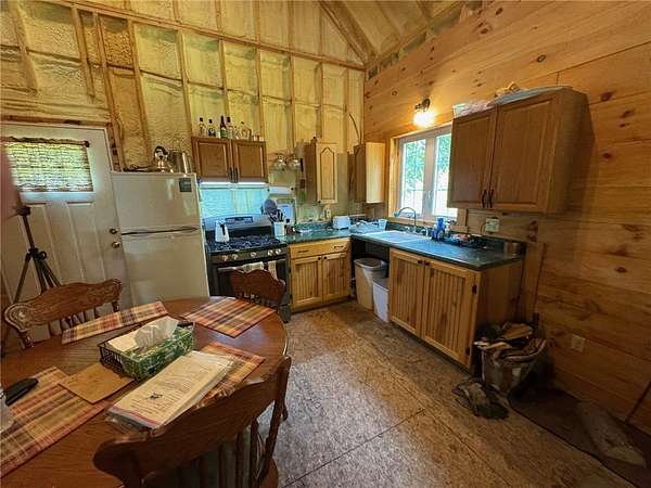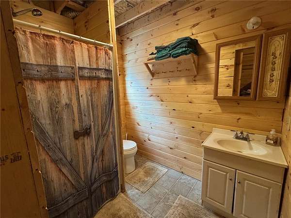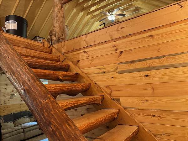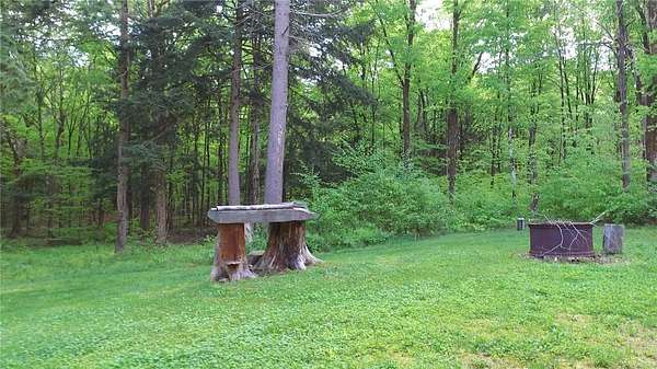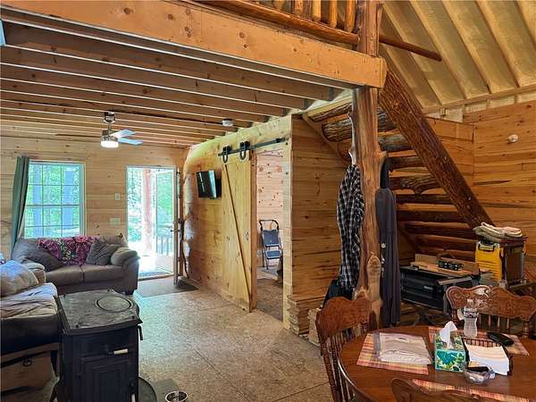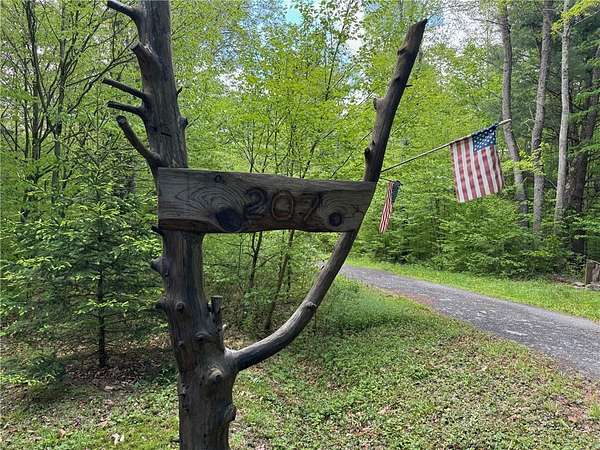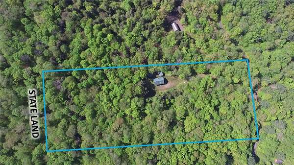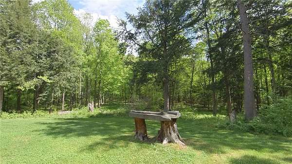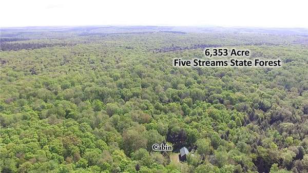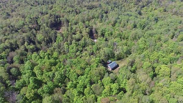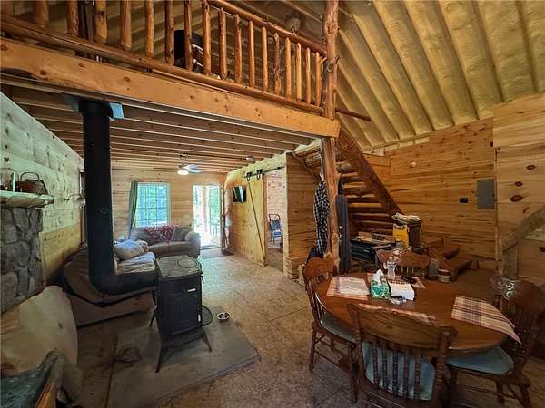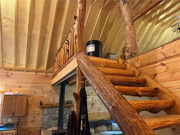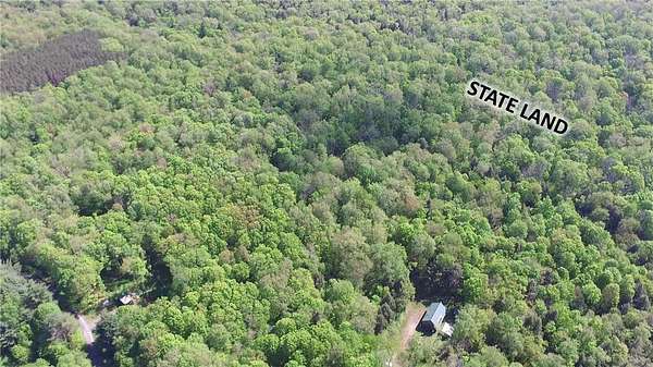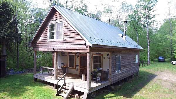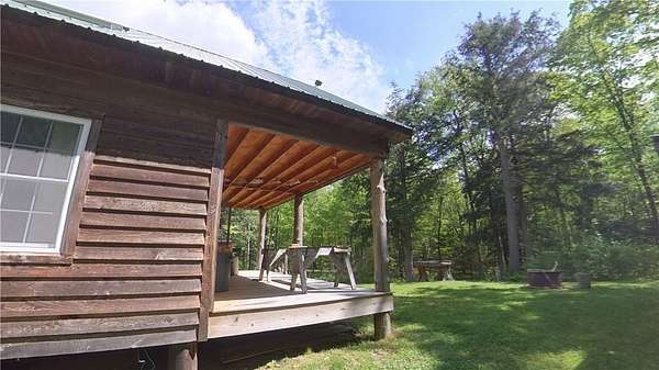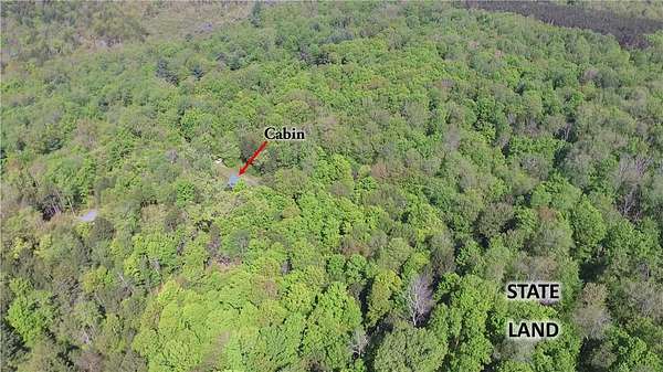 Cherry Lane Hideaway: Fantastic hunting cabin tucked away in a private recreational subdivision bordering over 6300 acres of state land. Off grid with all the comforts of home: kitchen, full bath, spray-foam insulation, solar power + generator hook-up for back-up, wood stove, well, septic and even CO/smoke detectors. --- 3D Tour available! * POSSIBLE OWNER FINANCING! * The Adirondack-chalet style cabin creates the perfect shelter in this incredibly private escape. The large back deck looks onto the woods, teeming with whitetail and wildlife. Built completely up-to-code, the cabin features logs claimed from the property with great design features and character. Check out those stairs and railings! Most of the materials are on-site for the final finishing touches and will be included with the sale. The first floor is open concept with living/dining/kitchen. The Vermont Castings wood stove keeps the entire cabin toasty on freezing Winter nights. Private bedroom with sliding barn-style door. Rounding out the first floor is the full bath with shower and the soaring 2-story cathedral ceilings over the kitchen. The second floor loft is open with beautiful log beams and stair treads creating a true Adirondack treehouse. All the milled boards and spindles to make the final finishing touches are stored safe and dry in this perfect-for-a-primary suite space. Bordering the Five Stream State Forest, walk right out your back door for access to thousands of acres of state game hunting lands and trails. * POSSIBLE OWNER FINANCING! * 3D Tour: