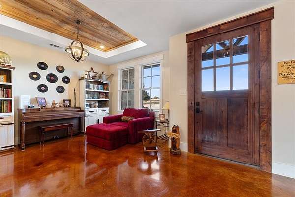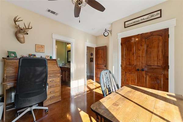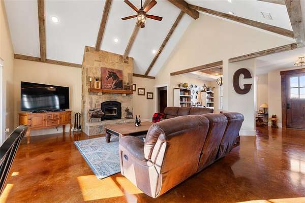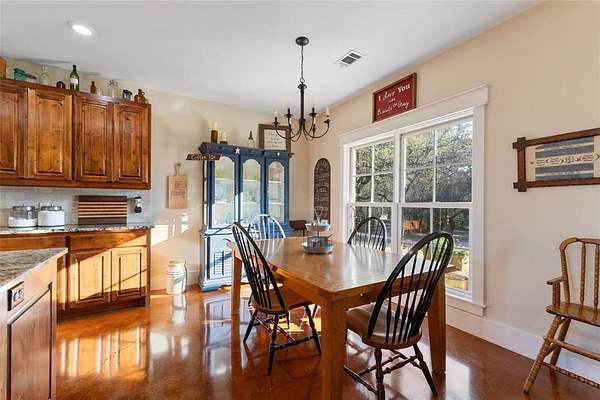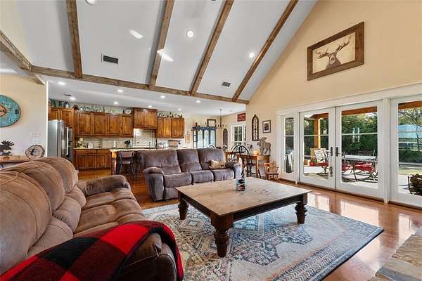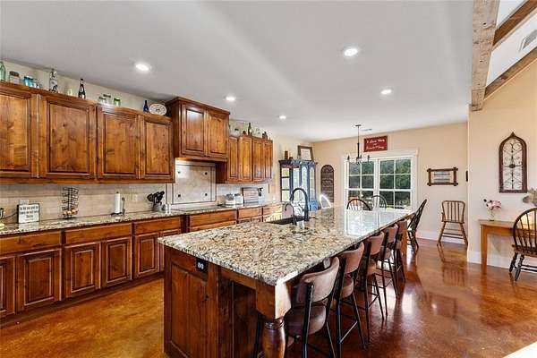 Private country oasis just minutes from Decatur. Come & enjoy a serene country get away with all the convenience of town. On just under 17 acres, with 2 ponds, this 2610 sqft, 3 bed, 2.1 bath custom home offers a private feel nestled a quarter mile back in the trees. The fully landscaped exterior & 8' stained front door welcome you in to a luxurious open floor plan. The perfect blend of rustic & modern, this home uses reclaimed wood & salvaged barn beams for a touch of yesterday with a fully modern kitchen. The induction cooktop, walk in pantry, granite countertops & stainless steel appliances are a cooks dream. While the large island, with its farm house sink, has plenty of room for seating and entertaining. Easy flow right into the living room with its high vaulted ceiling and stone woodburning fireplace means everyone is included. Entering the primary suite is a getaway all its own. Large french doors overlook a private patio and pond. The ensuite bath with oversized shower & soaker tub make it a spa like experience. The attached closet doubles as a tornado shelter for added security & peace of mind. The durable concrete floors & metal roof offer low maintenance & beauty while the spray foam insulation & premium windows keep utility bills low. The expansive back porch offers plenty of room for relaxing & a stunning view of the large backyard & garden area. The oversized garage can house two full sized trucks with room to spare. There is a 40x75 shop with an efficiency apartment inside with its own septic, just perfect for in-laws, college kids or rental opportunities. The shop is fully set up for working with electric & water and has space for equipment and covered RV parking with electric, sewer hookup & available water. Don't forget the loafing shed for horses or cattle & a small barn for goats, chickens or sheep. The property is fully fenced and cross fenced with new wire being installed across the front pasture. Schedule a showing today.