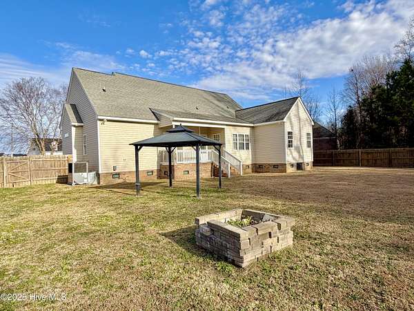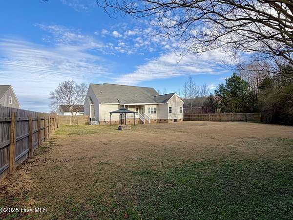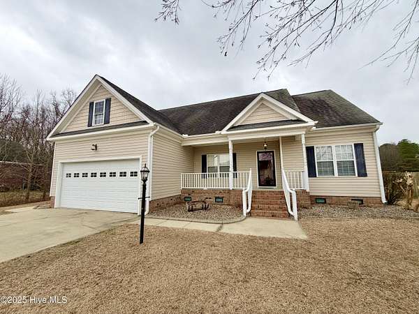 Are you seeking a residence with land in the county and desirable subdivision? Look no further. This 3-bedroom, 2-bathroom home spans 1.5 acres in Dogwood Estates, offering a fenced backyard and new HVAC system. Highlights include a split floor plan, formal dining room, stainless steel appliances, solid surface countertops, tile backsplash, and farmhouse sink. The master suite features a jetted tub, shower , and walk-in closet. Furthermore, the property includes a floored attic space with permanent stairs presenting opportunities for expansion and additional square footage. Home is very close to Greene and Lenoir county lines as well as in Wayne Co