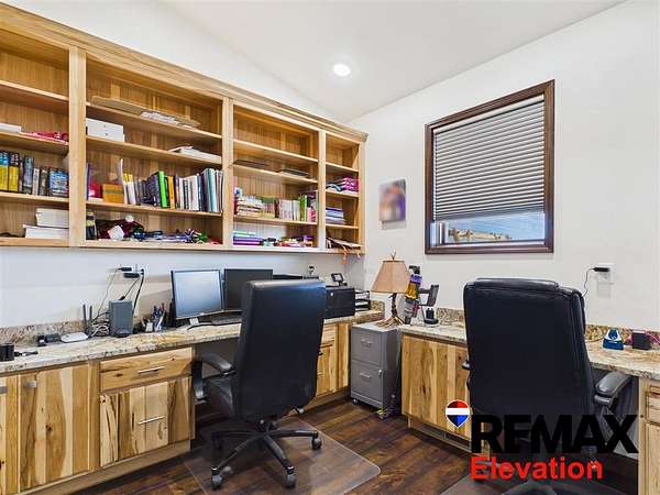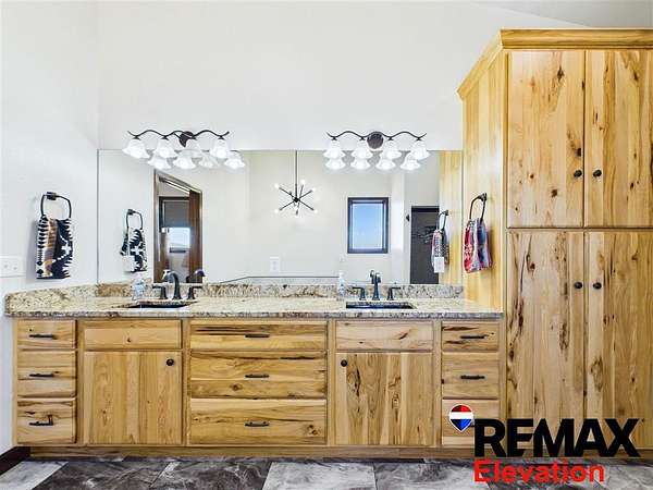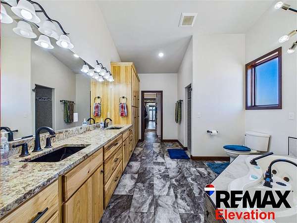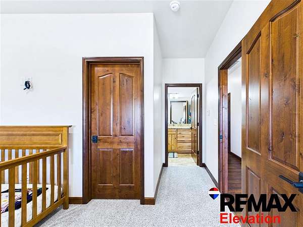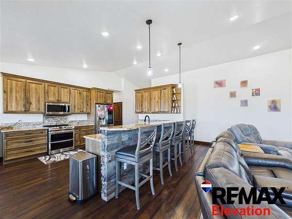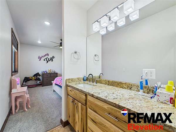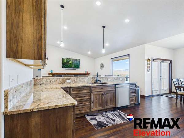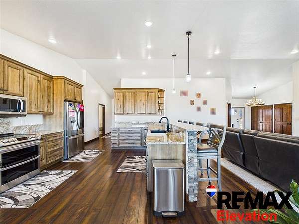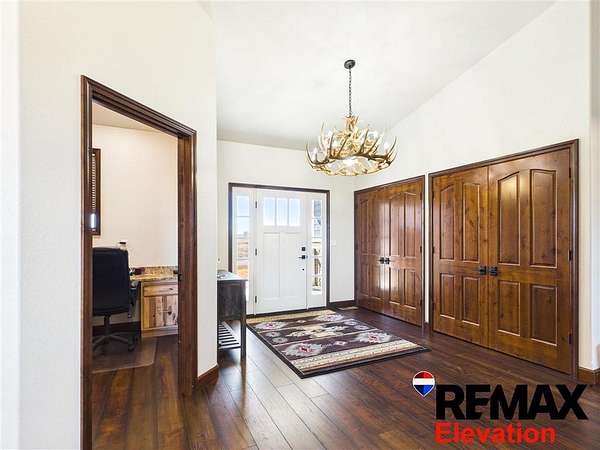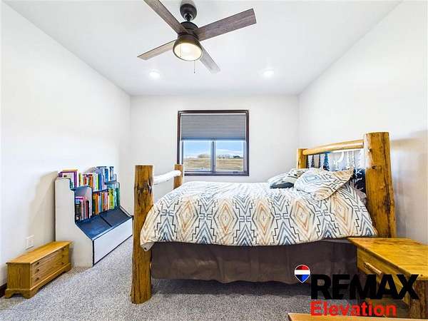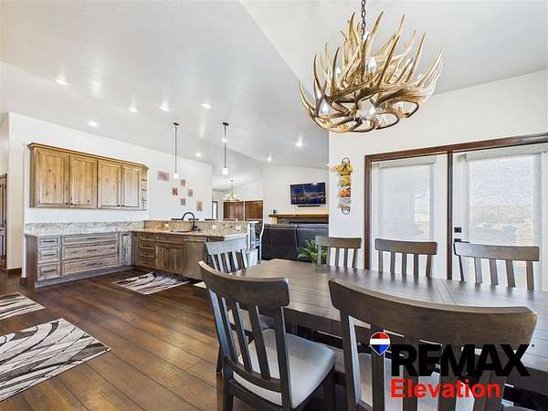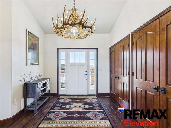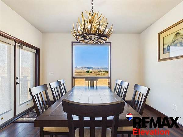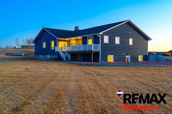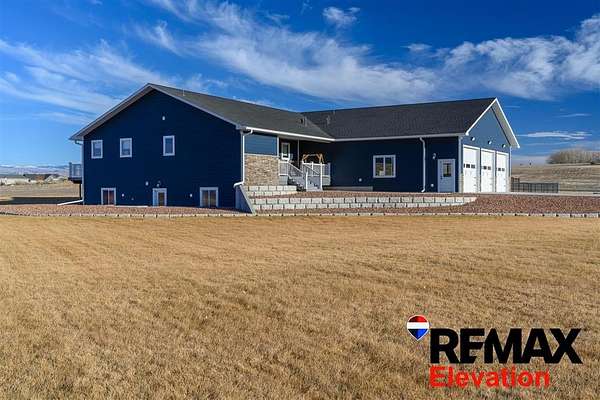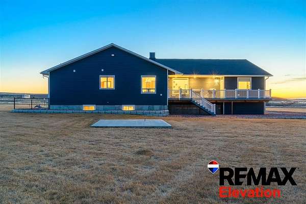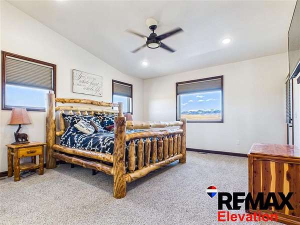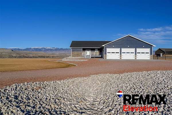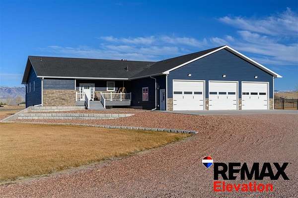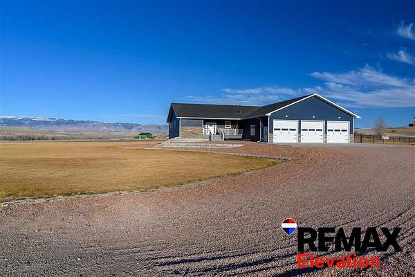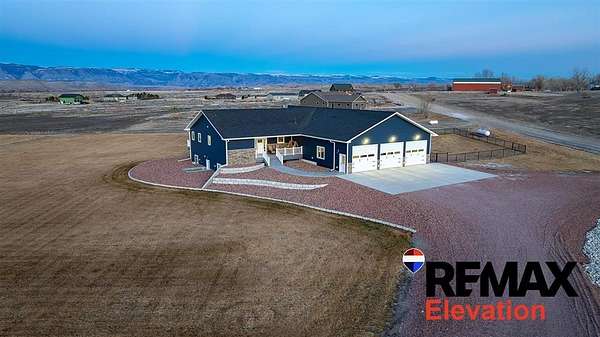Built in 2021 and set on 1.93 acres in the Scharen Subdivision, this 6,108 sq ft custom home captures sweeping views of the Bighorn Mountains. The open main level features granite countertops, stained hickory cabinetry, formal dining, and a spacious living area with electric fireplace. The private primary suite offers deck access, heated soaker tub, walk-in shower, dual vanities, and large walk-in closet. Three additional main-level bedrooms include a Jack-and-Jill bath and separate en-suite. The home features 200-amp electrical service on both the main and lower levels for enhanced capacity and flexibility. The walk-out basement provides framed bedrooms and bath, multiple egress windows, and expansive unfinished space for future living or recreation. In-floor heat extends through the home and 1,752 sq ft 3-car attached garage. Landscaped grounds include underground sprinklers, fenced pet area, and a backyard concrete pad ideal for a gazebo or hot tub.
