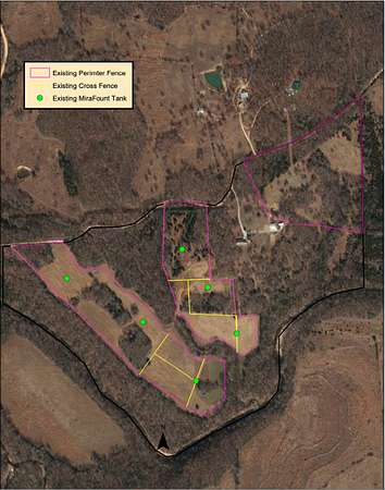 Seven individual fields, all cross-fenced, each with Mirafount freeze-proof water tanks connected to the well system.