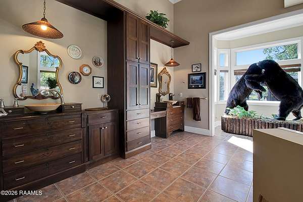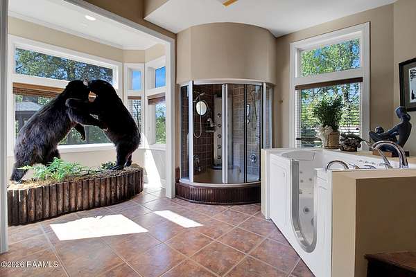 - 9+ ft Ceiling, Attic Access, Bookcases, Built-In Features, Built-Ins, Central Vacuum, Computer Nook, Crown Molding, Granite Counters, Guest Suite, High Ceilings, In-Law Floorplan, Kitchen Island, Multi-Head Shower, Primary Bath, Sauna/Steam, Tile Counters, Varied Ceiling Heights, Vaulted Ceiling(s), Vaulted Ceilings, Walk-In Closet(s), Wet Bar, Whirlpool
