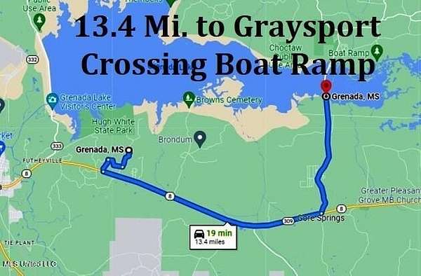 Directions: From the I-55 Grenada Exit 206 go East on Hwy 8 for 6.8 Mi. then Left towards Hugh White State Park onto Hugh White State Park Rd. for 1.1 Mi. to the Land on the left. A close Street address for your GPS is 800 Hugh White State Park Rd, Grenada MS 38901