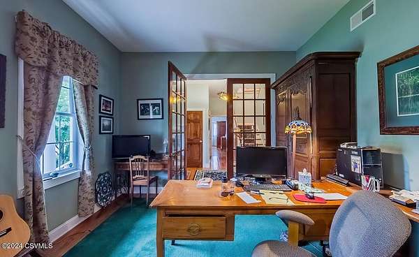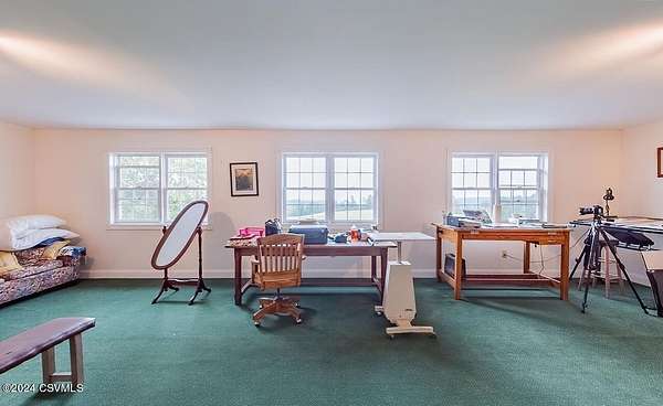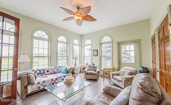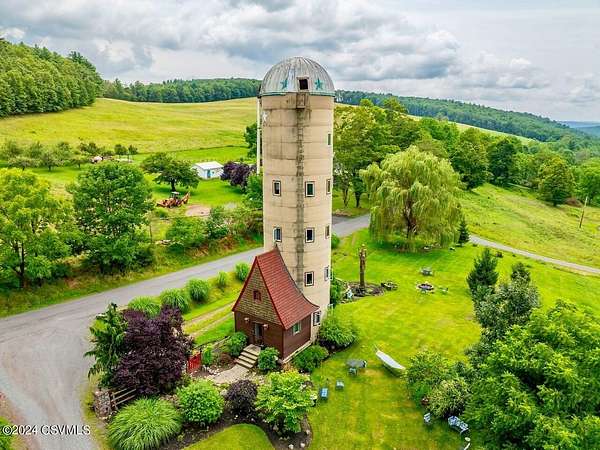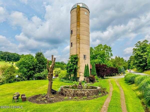 Country Estate! Nestled in the heart of Pennsylvania, this property offers fantastic hilltop views and fenced meadows on 52.73 acres. The estate features a spacious primary residence and a converted concrete silo guest home. The primary house boasts a gourmet kitchen with granite countertops, a cozy breakfast nook, and a pantry with frosted glass. The main suite includes his and hers bathrooms and walk-in closets. The gardens feature a stream with a pond and a multi-heat greenhouse. Additional highlights include a barn with horse stalls, a 3-car detached garage, and a basement workshop. The guest home offers a kitchen, laundry, living room, bathroom, and observation room. Contact Brian Fisk 570-336-6391 for details and to schedule a tour.