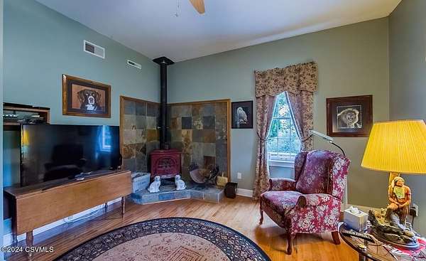 - Dryer, Hardwood Floors, Whirlpool Tub, Wood Stove