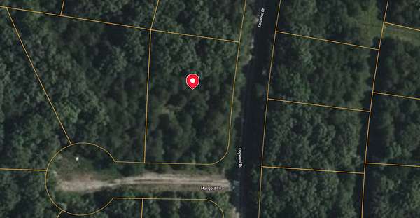 The lot is wooded, providing natural separation and privacy, while still being part of a developed residential area.