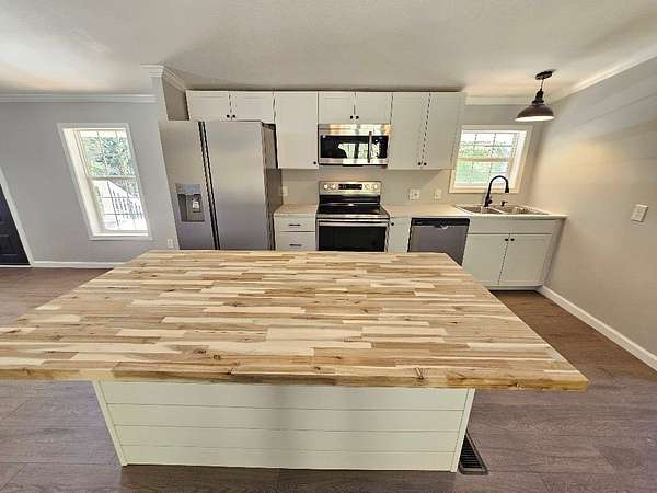 Beautifully Remodeled 3-Bedroom, 2-Bath Home on 1.56 Acres! This spacious home has been completely updated with modern touches throughout, including a new roof, heat pump, and luxury vinyl plank flooring. Enjoy a large living room and cozy den, perfect for relaxing or entertaining. The updated kitchen features new appliances, cabinets, and a stunning island with a butcher block top. The large master suite includes a soaking tub, new vanity, and walk-in closet, while two additional bedrooms and a full bath offer plenty of space for family or guests. Step outside to the covered front porch, ideal for quiet mornings or evening gatherings. Nestled on a private 1.56-acre lot, this home offers peace and tranquility while being just minutes from the City of Galax, New River Trail, and Blue Ridge Parkway. Call today to schedule your showing-this move-in-ready home won't last long!