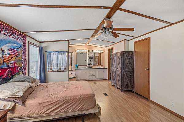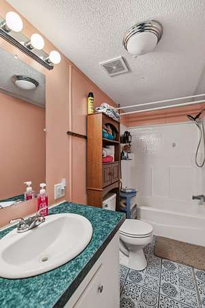 - Double Vanity, Laminate Counters, Soaking Tub