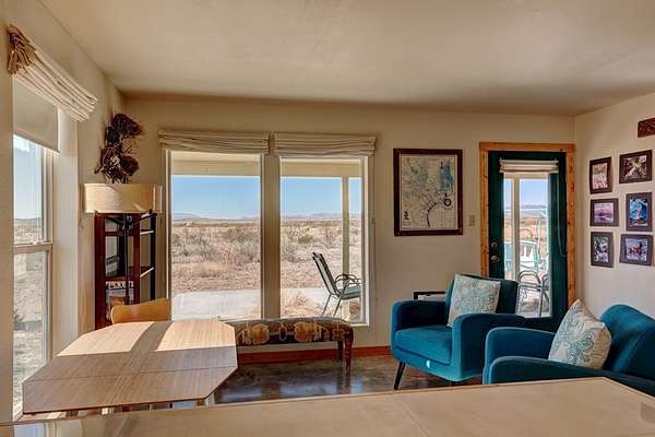 Est $2,432/moFurnished, self-sufficient desert retreat in Marathon with its own well, solar, propane, generator, and septic. Cozy but full of comfort and simple elegance, with an efficient washer, carport, and storage. Wide-open mountain vistas steal the show. Set on 8 lots at the quiet west edge of town, this hideaway rings true with West Texas spirit and plenty of room to dream.
