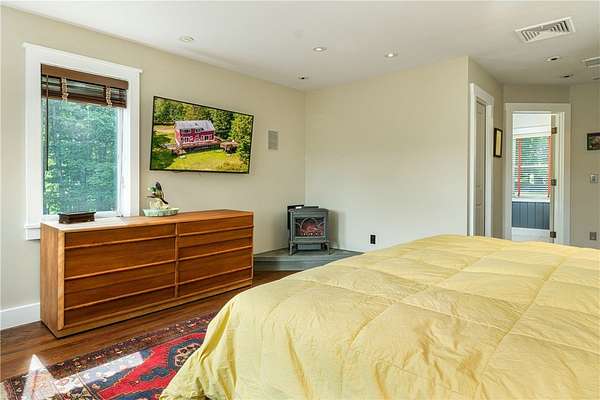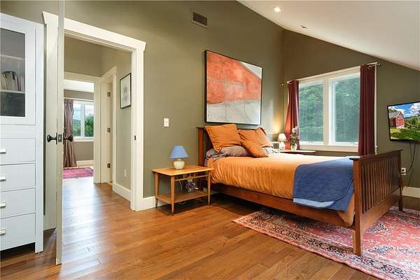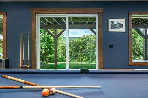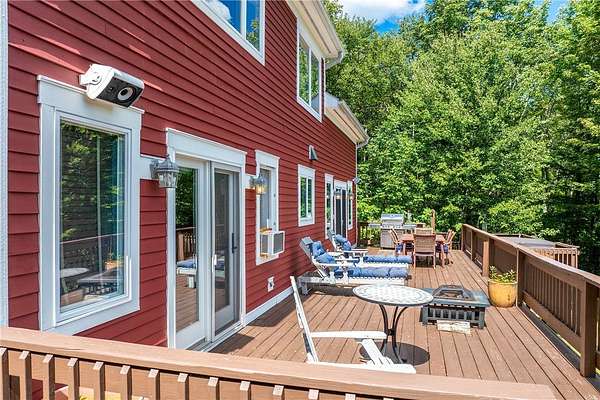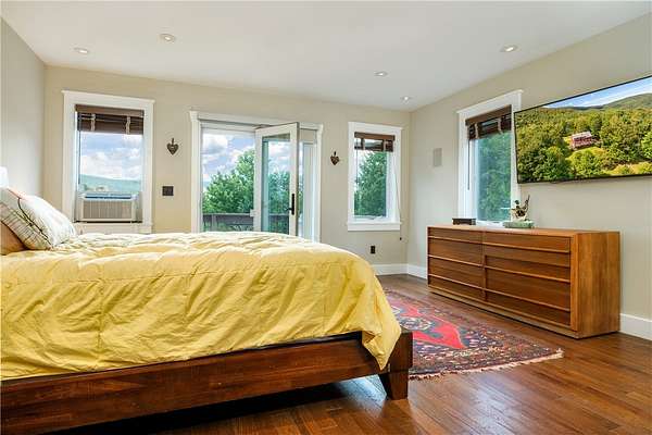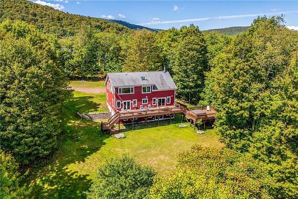 A Captivating Mountain Retreat - Stunning Mountain-Side Contemporary In a breathtaking landscape, this home blends luxurious living w the tranquility of nature. On 5.85 ac, the residence offers a serene environment with panoramic views and a level driveway. At its core is state-of-the-art infrastructure, featuring radiant heating systems with multi-zone control. High-speed fiber optic internet & top-of the line finishings. You are greeted by soaring ceilings that define the open-concept main living area w radiant heat solid oak & walnut floors. The kitchen/living/dining space is designed for living, illuminated by numerous windows. A chef's dream w high-end Bosch appliances, incl a 42-inch refrigerator, Panasonic microwave, and Bosch Silent Plus dishwasher. A Viking stove centerpiece, complemented by solid brass hardware & a striking charcoal grey honed granite, seamlessly incorporating an edgeless Kohler farmhouse sink for an immaculate look. The great room is completed by a contemporary 3-sided fireplace framed by a stunning bluestone hearth. 1st-floor primary suite offers mountain views through large windows and private deck access. A cozy gas fireplace set in a beautiful bluestone alcove. En-suite bath w Carrara marble flooring, a spacious standing shower, and a red clawfoot slipper tub. Upstairs, 2 bedrooms share a stylish full bath. Stunning natural light and remarkable views. A convenient loft area lends itself to a home gym or office, w skylights and views of the mountains. Continue to the ground floor, where a billiards await w wet bar & private wine room (cork floor). Sliding doors to patio overlooking the valley. The laundry room and an additional full bath PLUS access to utility room and single-car under-house garage. A vast deck runs the length of the house, ideal for hosting or soaking in the sun or hot tub. Dual staircases lead to the lower patio and backyard. 207 Small Street is more than a residence; it's a lifestyle choice. This elegant contemporary home harmonizes sophistication, comfort, and style, providing unparalleled amenities and picturesque views. Schedule your showing & discover this extraordinary mountain sanctuary.