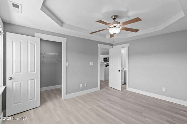 - Ceiling Fan(s), High Ceilings, Master Downstairs, Tray Ceiling(s), Vaulted Ceiling(s), Walk-In Closet(s)
