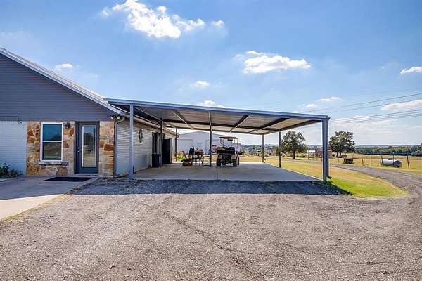 Experience peaceful country living on nearly 20 acres in Poolville, where open skies, a constant gentle breeze, and beautiful views surround you in every direction. Built in 1987 and remodeled in 2019 with 676 sq. ft. of additional space, this spacious property now offers 2,208 sq. ft. of thoughtfully designed living space filled with warmth, charm, and function. The ag-exempt land is ideal for livestock and agricultural use, featuring improved pastures, cross fencing, a pond, loading chutes, and a loaf shed with two stalls. The property layout is designed with convenience in mind, offering easy access for trailers, a circle driveway, and plenty of space to roam. Inside, the main home offers 3 bedrooms, including two spacious primary suites, and a large office with an exterior door—perfect for working from home. The kitchen is the heart of the home, featuring granite countertops, a large island, and abundant storage, all opening to a bright, open living area centered around a cozy wood-burning brick fireplace. Step outside and enjoy the stunning 58’x14’ covered front porch, complete with a rock fireplace, cedar posts, ceiling fans, and incredible views across the countryside. Whether you’re enjoying your morning coffee or unwinding in the evening, it’s the perfect spot to take in the serenity of country life. A separate guest house offers additional living space with a kitchen, living room, bedroom, and laundry. Ideal for guests, extended family, or rental potential. Additional property highlights include a 40’x60’ shop with electricity and a mancave, RV storage with sewer hookup, a 4-car carport, greenhouse, Generac generator, water softener, and attic space ready to be finished out for even more living area. This property offers the best of both worlds. Modern amenities and rural tranquility with just a short drive from Weatherford and Springtown. You’ll never want to leave this Texas paradise.