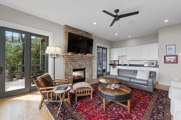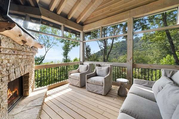 Your dream home tucked in the prestigious enclave of Utana Bluffs awaits you. This custom-crafted luxury residence offers a unique blend of elegance, comfort & natural splendor. Step through a welcoming courtyard into a home that immediately impresses w/soaring ceilings, thoughtful architectural details & designer finishes throughout. The kitchen is a culinary enthusiast's dream, featuring an oversized island w/granite countertops, abundant custom cabinetry & beverage bar w/floating shelves. Just off the kitchen, you'll find a walk-in pantry, charming 1/2 bath, & well-appointed laundry room. The open-concept dining area flows effortlessly into the great room w/wood burning fireplace & expansive picture windows that frame stunning layers of long-range mountain views. Sliding doors open to an outdoor living space w/retractable screens, kitchen & fireplace, perfect for enjoying crisp mountain evenings. The main-level owner's suite is a true sanctuary offering a wet bar nook ideal for morning coffee & balcony w/French doors to savor the panoramic mountain views. The luxurious en-suite bath has a large walk-in shower, separate soaking tub surrounded by picture windows, private water closet & walk-in closet. An elevator offers seamless access to all levels of the home. Upstairs, you'll find a landing overlooking the foyer leading to two bedroom suites each with their own gorgeous en-suite bath. The terrace level is an entertainer's paradise with a large living area that centers around a 2-sided fireplace, your own wine cellar & half bath. Two more large bedrooms with en-suite baths finish this level. Step outside to your private outdoor oasis w/several seating areas, sunken hot tub & an open deck that leads to a fenced backyard. Encircled by national forest, the residents of this premier community enjoy a welcoming clubhouse for social gatherings, gym, game room, owner caretaking services, scenic hiking trails, picturesque waterfall & more in a warm, inviting atmosphere.