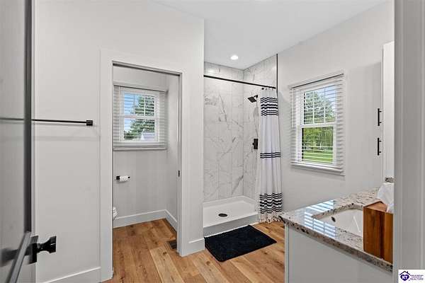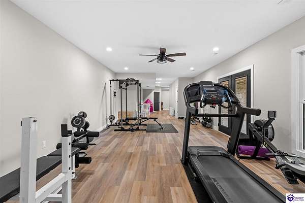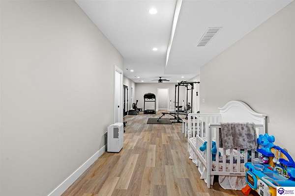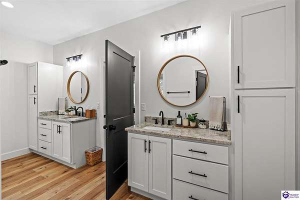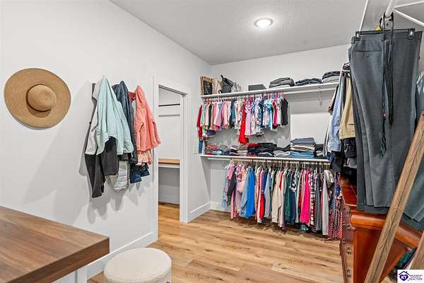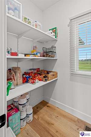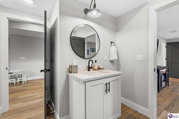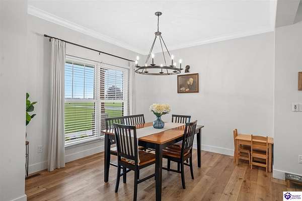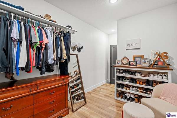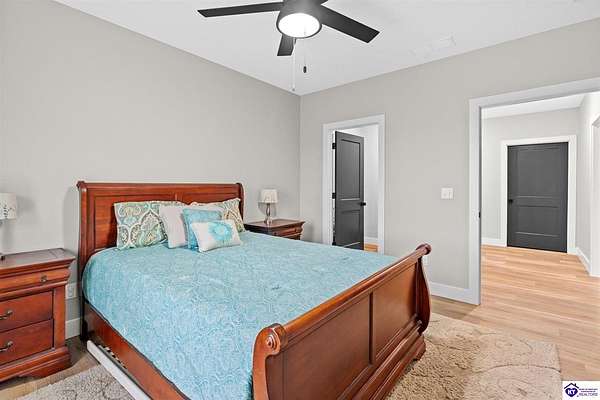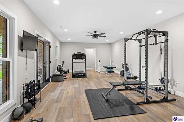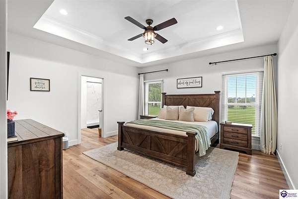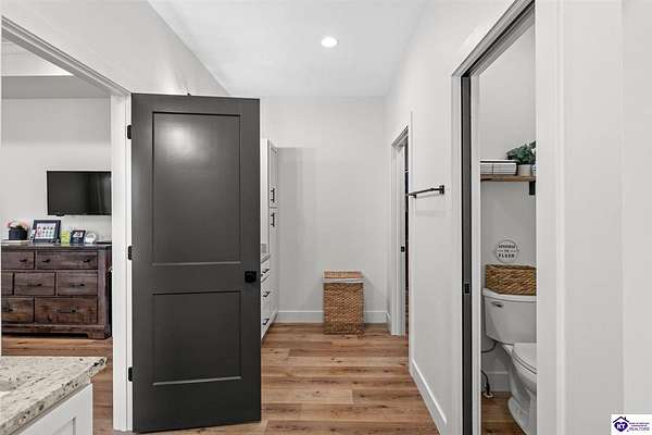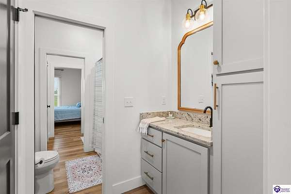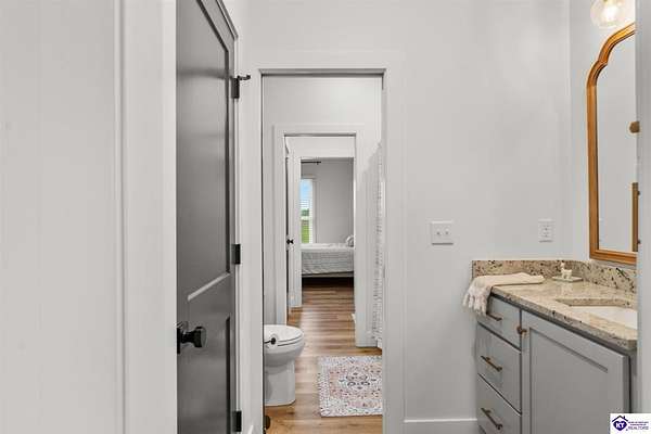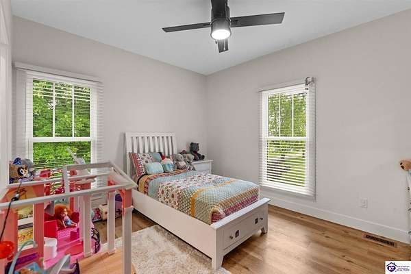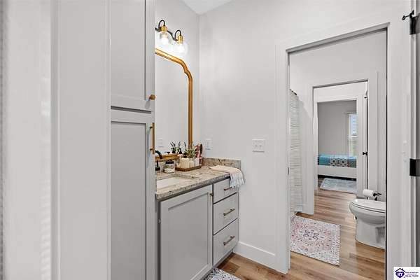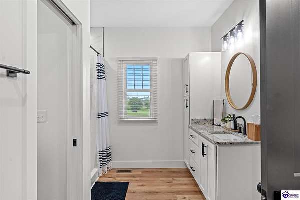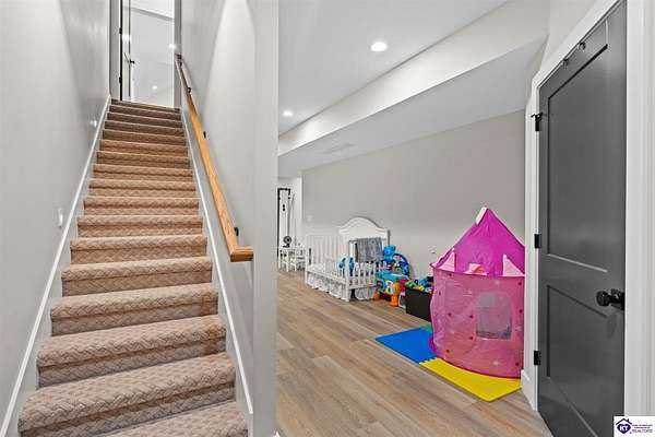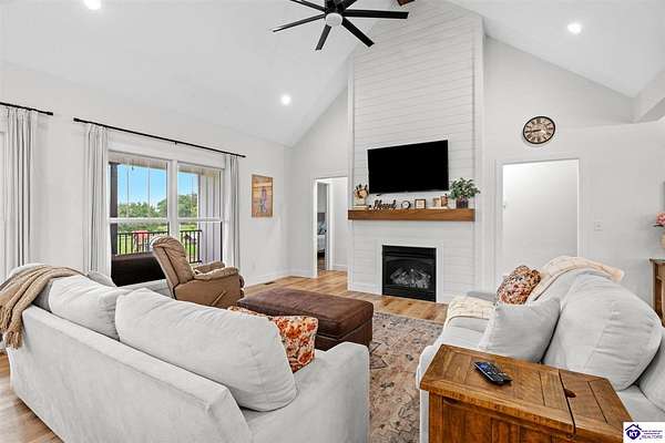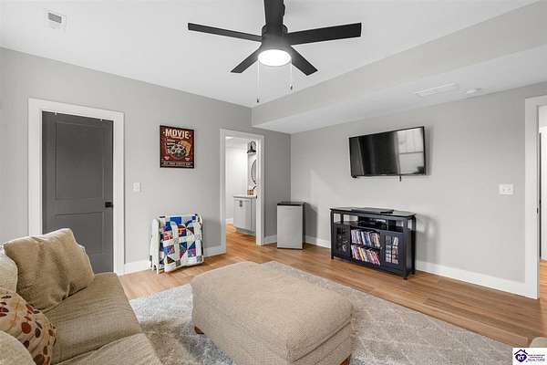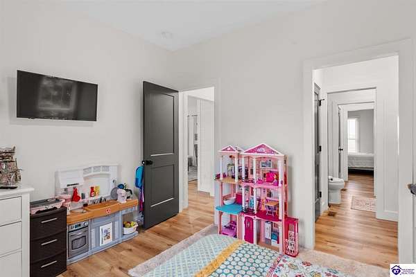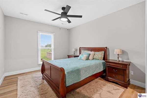 ONLY FIVE MILES TO ELIZABETHTOWN AND 10 MINUTE DRIVE TO I-65! Step into your DREAM HOME and be captivated by its tall ceilings, shiplap gas fireplace, and exquisite kitchen, all meticulously designed in this custom crafted floor plan. This beautiful home features LVP flooring and 9 ft ceilings throughout the entire home creating a spacious ambiance. The main level boasts three bedrooms and two and a half bathrooms, while the partially finished full walkout basement offers an additional two bedrooms, a full bathroom, and an oversized room that can be transformed into a gym, game room, or any other space that suits your preferences. Throughout the entire home, meticulous attention to detail is evident. The GORGEOUS kitchen is equipped with an eight-foot island featuring a farmhouse double basin sink and beautiful Quartz countertops. Custom cabinetry and range hood, thin brick backsplash, ample countertop space, and a walk-in pantry ensure a functional and inviting kitchen. The Café Stainless Steel Wi-Fi-capable appliance package includes a gas stove, standard-sized French door refrigerator, Convection oven Microwave and dishwasher. The primary suite offers a spacious bedroom with a tray ceiling adorned with crown molding, creating an even more inviting atmosphere. The primary bath features a five-foot tiled shower, a private toilet room, and a double vanity with ample linen storage. The primary closet provides ample space and convenient access to the laundry room. On the opposite side of the house, two more bedrooms share a Jack and Jill bathroom. Quartz and Granite throughout. The oversized 28’ x 10’2” back covered porch creates the perfect space for entertaining, relaxing after a long day, or simply enjoying beautiful unobstructed sunrises, made durable and low maintenance thanks to the TimberTech Composite decking and aluminum railing. Also have peace of mind with installed gutter guards, ensuring efficient water flow and reduced maintenance. Energy-efficient with spray foam insulation. This home is situated on 1.57 acres, providing a serene and tranquil retreat away from the hustle and bustle of city life but still conveniently located within a short distance of Elizabethtown and I-65, with easy access to Lincoln Parkway. This location is unparalleled and offers the best of both worlds. Do not miss your opportunity to own this STUNNING home! AGENT OWNED.