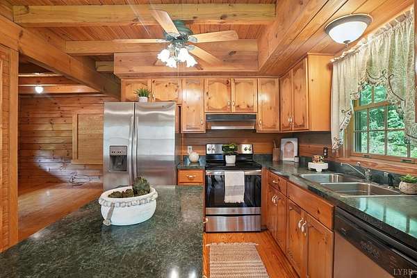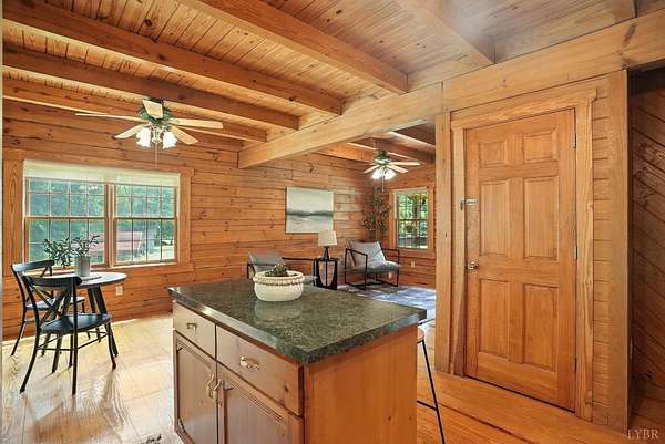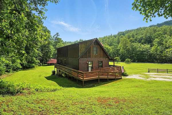 Motivated sellers! Appraisal in hand for $510,000 from November 2024. Over $10k in equity. Escape to your own private mountain retreat! Nestled on over 7 acres along the Piney River, this custom log cabin borders the George Washington National Forest near the Amherst/Nelson County line. Enjoy the soothing sound of the stream from your wraparound porch or cast a line before your morning coffee. The cabin sits on a flat, usable yard and features a large covered front deck, spacious family room addition, kitchen with island, sitting area, full bath, and flexible space for dining or an office. Upstairs offers two bedrooms that have been virtually staged, a full bath, and potential for a third bedroom and plumbing for bathroom. The partially finished basement provides additional living or recreational space with room to expand. Outside, you'll find a workshop/ two-car garage, plus a second building site at the top of the property with mountain views. Basement plumbed for additional bathroom