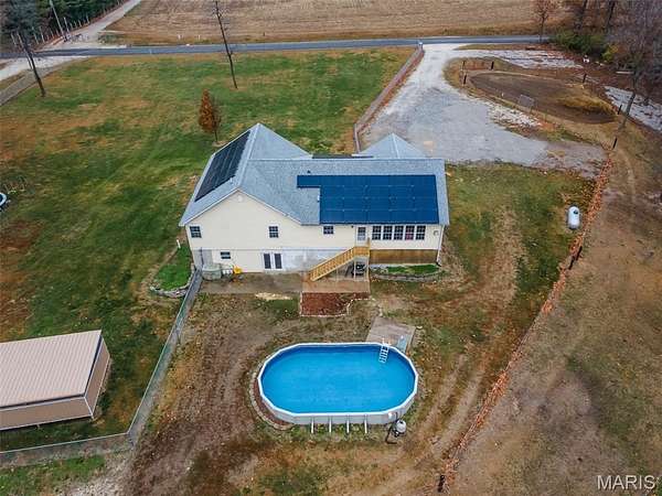 The lower level features a large family room with a dry bar, a bonus room, a full bathroom, a laundry room, and an additional bedroom--perfect for guests or extended family. Enjoy outdoor living with an above-ground pool, two storage sheds, and flexible fenced areas. The front yard is fenced for animals, and the backyard has additional fencing that can remain or be easily removed to suit your needs. Solar panels are fully paid off, providing the new owner with the benefit of consistently low power bills.