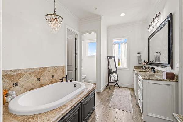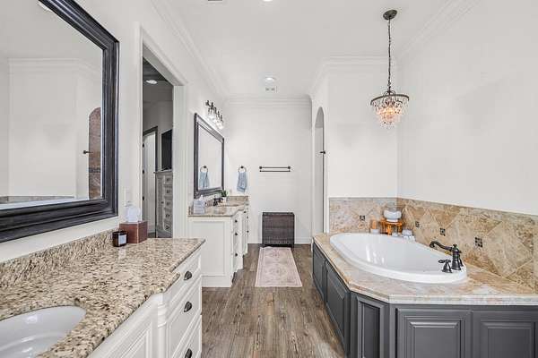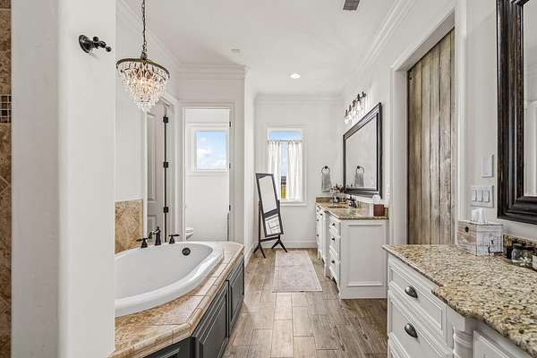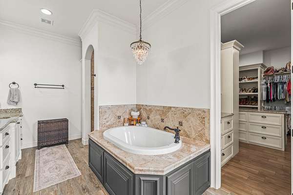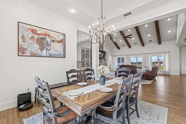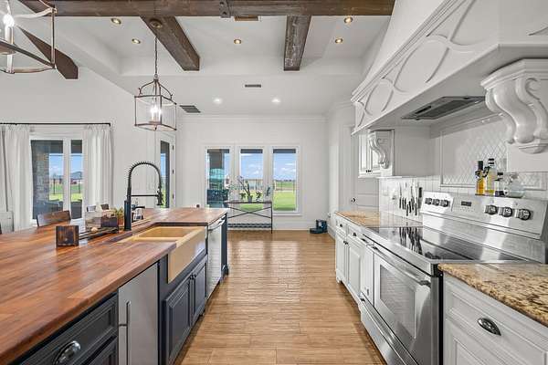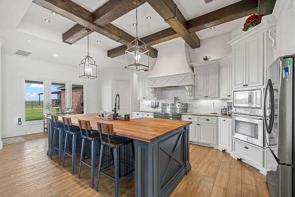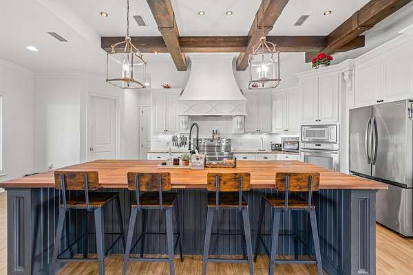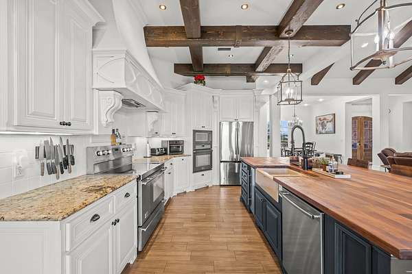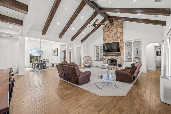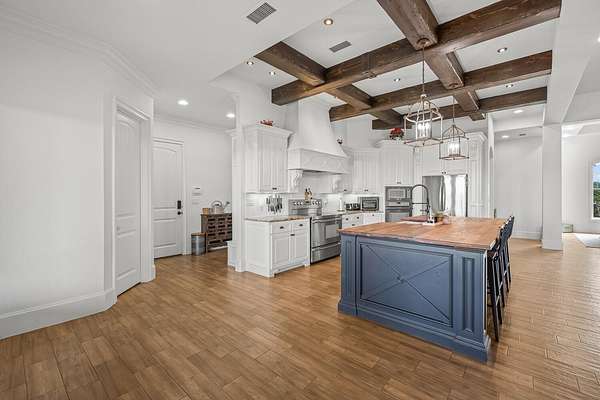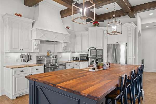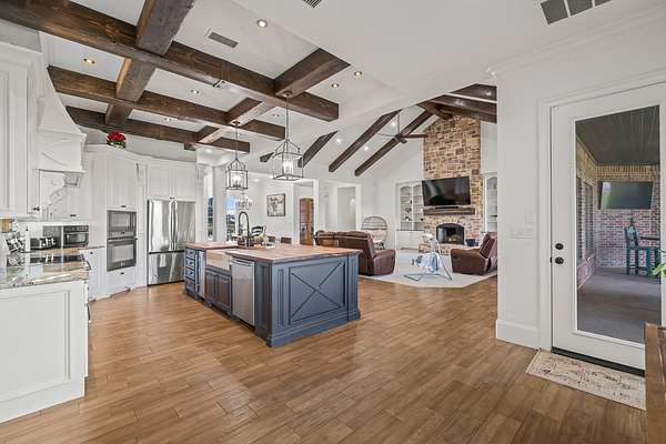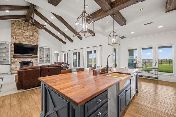 - Bar, Beamed Ceilings, Bookcases, Breakfast Bar, Built-In Features, Ceiling Fan(s), Chandelier, Double Vanity, Dry Bar, Eat-In Kitchen, Entrance Foyer, High Ceilings, Kitchen Island, Open Floorplan, Pantry, Recessed Lighting, Vaulted Ceiling(s), Walk-In Closet(s)