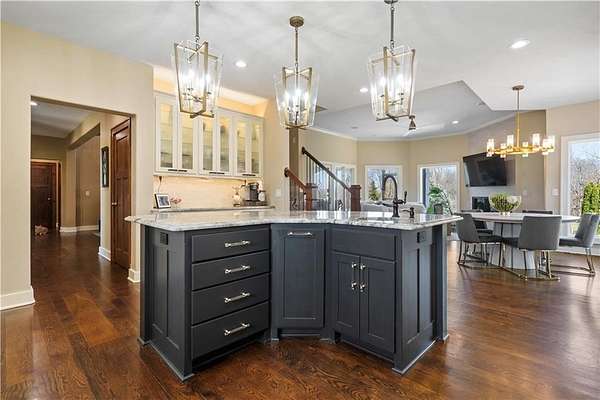 - Custom Cabinets, Kitchen Island, Pantry, Vaulted Ceiling(s), Walk-In Closet(s)