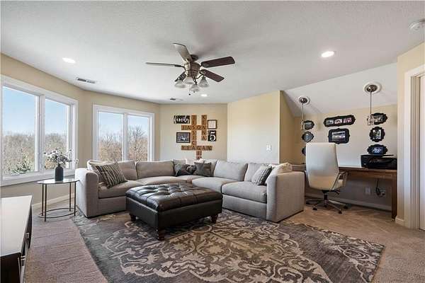 - Basement, Bathroom x 5, Bedroom x 5, Bonus Room, Den, Exercise Room, Living Room, Loft, Office