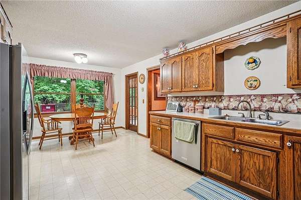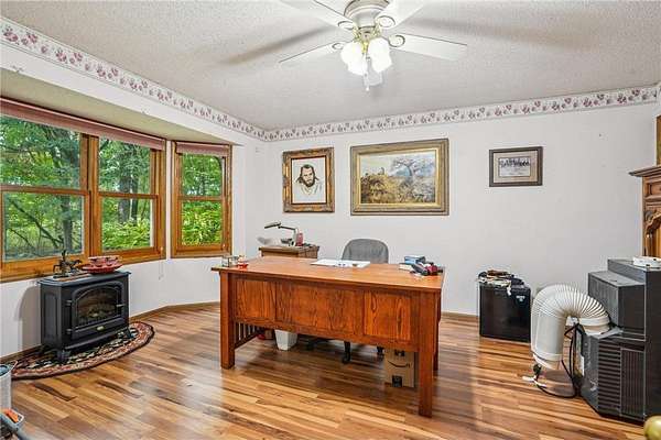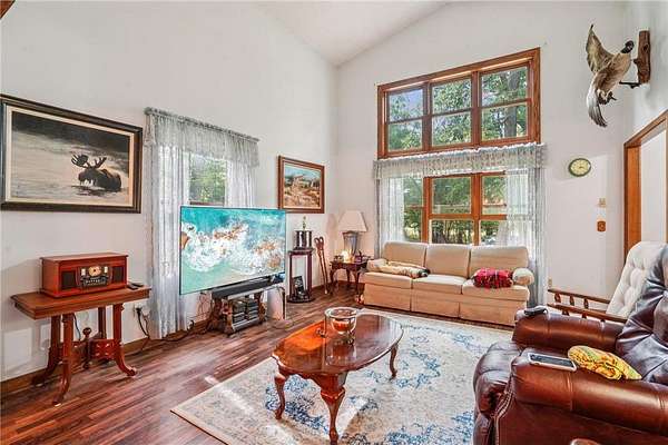 Upstairs you'll find an additional full bath, while large windows showcase peaceful wooded views with apple and other mature trees bordering the property. The home offers an attached garage plus a detached garage, along with a seasonal porch that could be converted into a 3rd stall, storage, or a workshop. The 6 private acres border the beautiful 650 acres of wildlife research and Boot lake (non recreational lake) Please see attached regarding the wild life scientific research information. If you are looking for peace and quiet this property is just right for you.