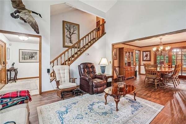 ATTACHED Mother-in-law apt with separate entrance, Lg Bd, full bath, full kitchen and living room with fireplace! 6 acres of privacy and a beautifully designed home featuring a desirable main-floor primary suite with a private full bath. The spacious kitchen flows into both a dining area and a formal dining room, while the main level also includes convenient laundry and a relaxing 4 season porch.