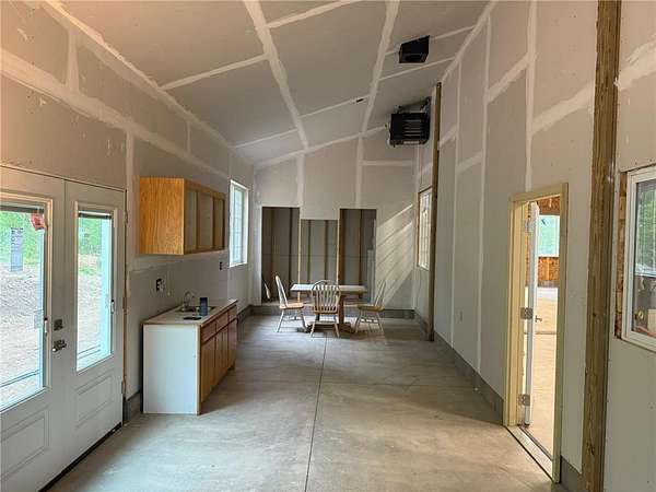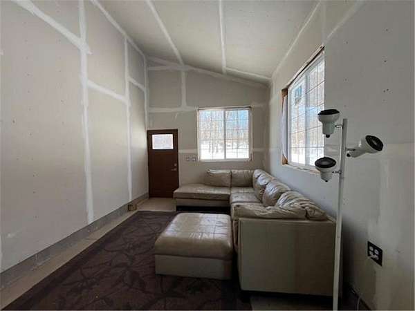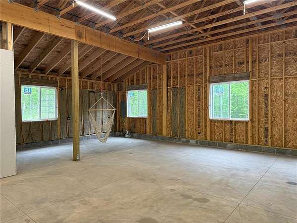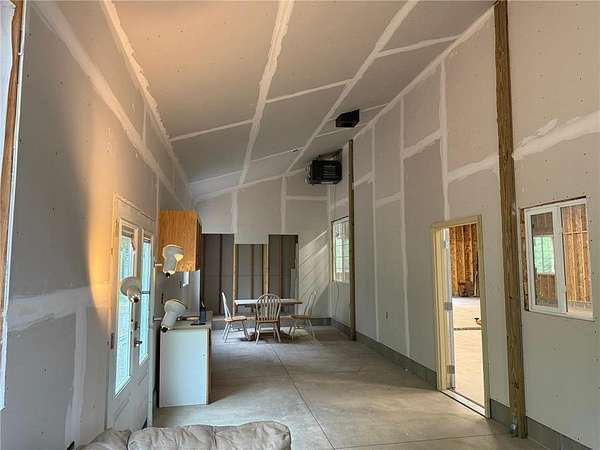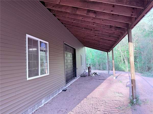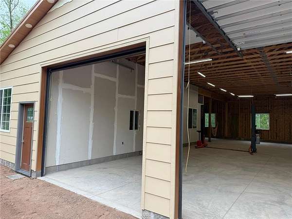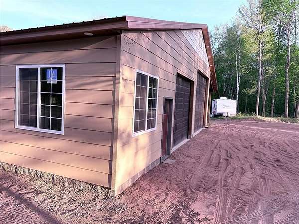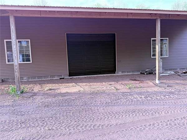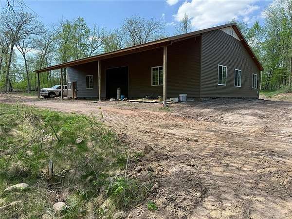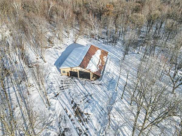 Tucked away on a quiet dead-end road, this unique property at 2072 209th Street in Centuria offers 2 separate wooded lots totaling 5 private acres--perfect for extra space or the option for a family member to build next door someday. The standout feature is a quality 56 x 64 stick-frame garage with 14' ceilings, 12' tall 2'' insulated overhead doors, 26 gauge metal roof & nine 5'x5' windows! Ideal for storage, hobbies, your motorhome, or big toys. A 12' lean-to adds covered storage options, plus an insulated office area is ready to go for work or planning your next project. Electric is scheduled to be connected this spring, and a loop driveway is already in place. Smart siding on the street side as well as strategic accent lighting gives great curb appeal. A fantastic start to your future homestead!