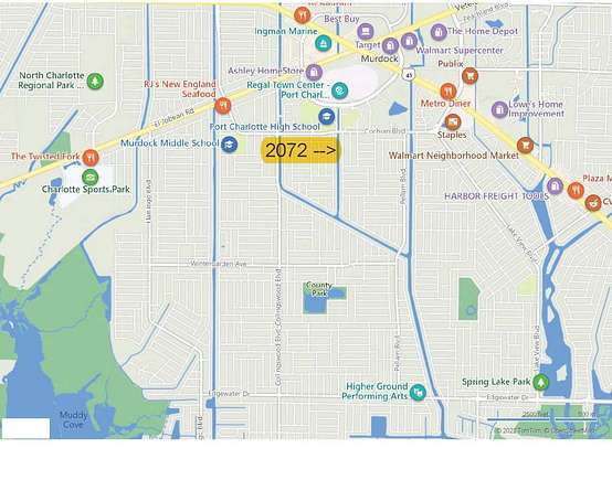 Build your new waterfront home in a Boaters Paradise for less cost than currently listed older homes which are now on the market! This 80'-125' 10,000 square foot waterfront lot is flat and already cleared (except ornamental trees) and is ready for building. There is room for both a new home as well as a pool, and there are no Deed Restrictions or HOA fees or rules to deal with. City water, electric, phone, cable and high speed internet are all readily available on the street at the front of the property. A survey and other documents are available. *MARKET CONSIDERATIONS* The prices for single family homes has risen steadily in this waterfront community and vacant waterfront lots have sold out quickly, with only 6 waterfront lots still remaining in this area in the MLS at the time of this posting. The Property Owner is also a licensed Broker who will waive the sellers commission, and can handle the entire sale through a bonded title agency, as well as to refer you to several local custom home builders, saving you considerable money. Charlotte County is halfway between Sarasota and Ft Myers, and is one of the only remaining waterfront communities that is still reasonably priced. Buy this lot now while it is still available, and build the home of your dreams later at your leisure! *SURROUNDING LAND FEATURES* This lot is literally blocks away from the Public High School and Technical College, and 5 minutes from the Town Center Mall, Sams Club, Walmart, Lowes, Home Depot, and dozens of fine restaurants and shopping. You are just minutes away from a local major Baseball Stadium and Public Fairground, and only 15 minutes from 4 very large nearby public beaches. Two hospitals with every type of medical doctor and provider are within 10 minutes, and you are within 15 minutes of Punta Gorda Airport (served by Allegiant Airlines), and just 45 min to 1 hour from all the other airlines at Ft Myers, Sarasota, St Petersburg and Tampa Airports. *SURROUNDING WATER FEATURES* Located on the Courtland Waterway, it is just a 25 minute idle cruise in your boat to Alligator Bay on the north side of Charlotte Harbor, where the Charlotte Beach Public Boat Ramp features sandy beaches, a large Community Pool, several Covered Outside Pavilions, a Conference Center and a very long public fishing dock extending into the harbor. One mile east of the Charlotte Beach Center is the new SUNSEEKER Waterfront Resort (built by Allegiant Airlines),with hundreds of hotel rooms, a 1,000 foot long swimming pool, a Golf Course, 17 waterfront restaurants, and a one mile long boardwalk along the waterfront, with a marina and boat rentals. Two miles directly across from the Charlotte Beach Center is Fishermans Village & Marina, featuring several dozen waterfront stores and restaurants along with a public marina and a variety of boat excursions that are available on a daily basis. Cruising east from the Charlotte Beach Center you can enjoy 15 miles of wildlife sanctuary along the peace River and one or two waterfront restaurants in an Old World River setting. Cruising West 15 miles takes you to Boca Grande Pass, where you can cruise out into the ocean for deep sea fishing, or turn south to Ft Myers, or north to Sarasota. Act now to secure one of the very few waterfront lots still available!
