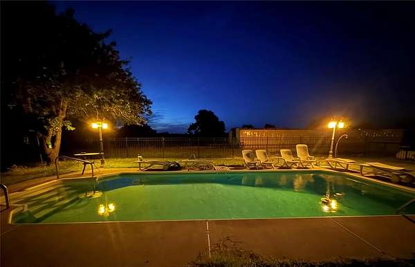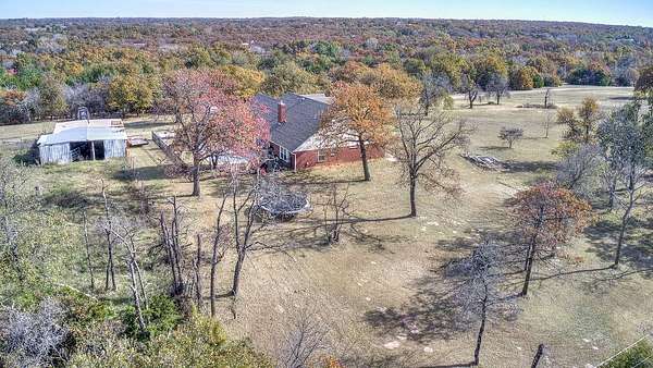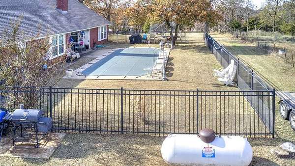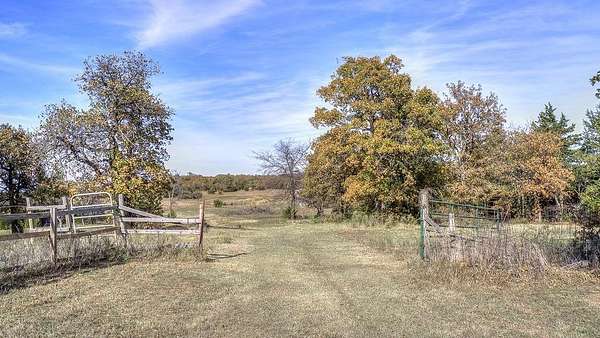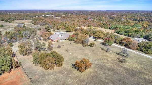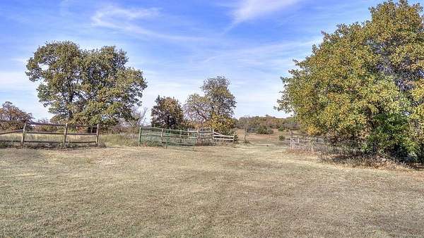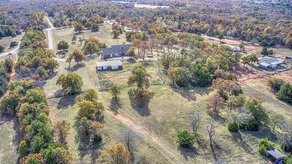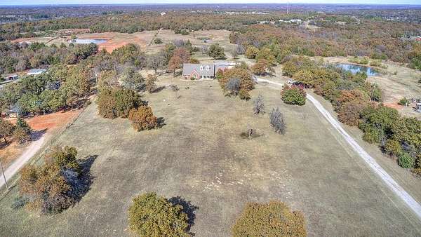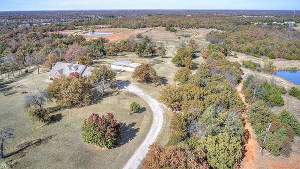 Welcome to your dream retreat - a beautifully updated home that perfectly blends rustic charm with refined elegance. Built in 1996, this 3-bedroom, 2-bath with an office home is positioned on 10 breathtaking acres, offering the perfect balance of comfort, space, and freedom. Located outside of city limits, this dream property has no HOA and no restrictions! Step through the entryway into an open, layout featuring luxury vinyl plank flooring and modern finishes throughout. The spacious living area is welcoming, centered around a cozy fireplace with a built-in blower that keeps the entire home toasty on cool evenings. The kitchen has beautiful granite countertops, ample cabinetry, recessed lighting, and a breakfast bar-perfect for casual meals or morning coffee. The large dining area easily accommodates your beautiful farmhouse table, setting the stage for memorable gatherings with family and friends. The owner's suite is a serene escape with a beautifully remodeled bathroom showcasing a modern standalone soaking tub and a luxurious walk-in shower. Each bedroom offers generous space and natural light, creating a sense of calm and comfort throughout the home. Downstairs includes 1,770 square feet of thoughtfully finished living space, while upstairs features an additional 1,000 square feet of unfinished area-ready for your personal touch. Imagine transforming it into a media room, guest suite, or hobby space-the possibilities are endless. Step outside to your private backyard oasis, complete with an inviting inground pool perfect for entertaining or relaxing under the Oklahoma sky. The property's 10 acres include a fenced pasture, a 6-stall horse barn, a chicken coop, and beautiful mature trees-everything you need for true country living. Whether you're looking for a family homestead, a hobby farm, or a peaceful country escape, this beautiful farmhouse has it all-luxury, land, and lifestyle. ***By appointment only. Only drive onto property with an approved appointment.