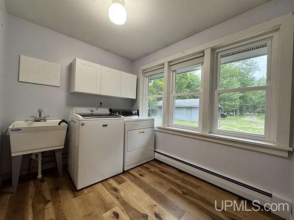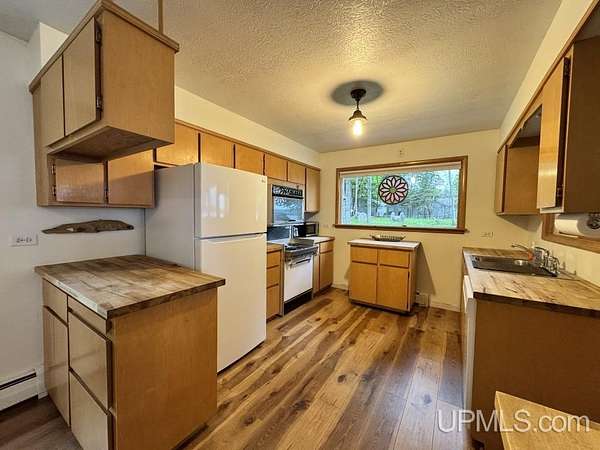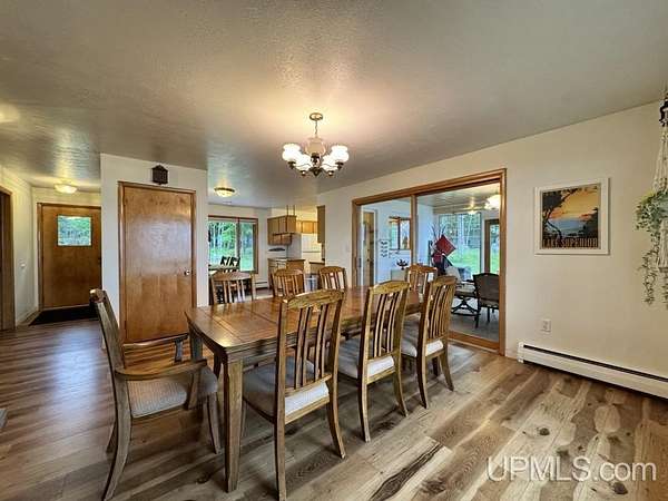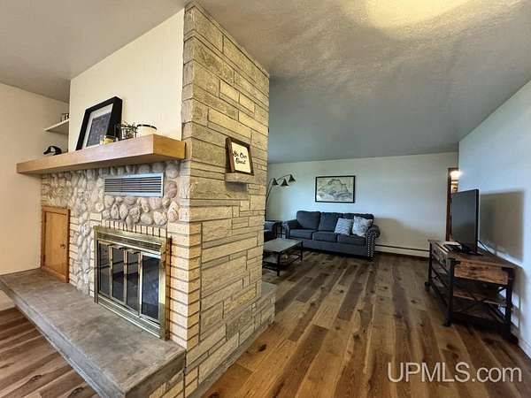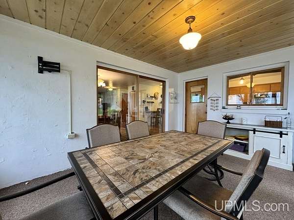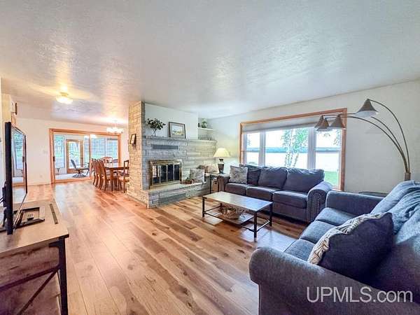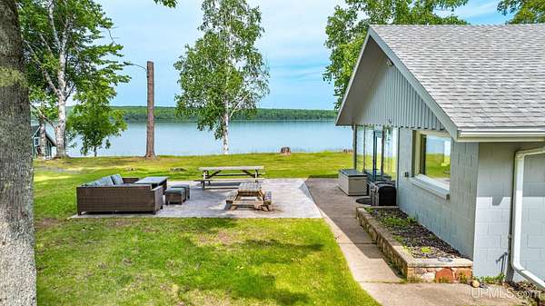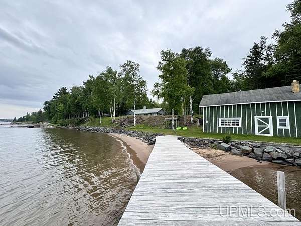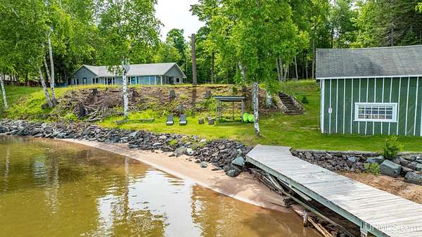 Talk about a rare find on Huron Bay! This beautifully updated 3 bedroom, 2 bath block home sits on over 2 acres with 225+/- feet of pristine, sandy frontage and a front-row seat to some of the best sunsets over Lake Superior. Whether you're looking for a forever home, a relaxing Up North getaway, or a top-performing vacation rental, this place checks all the boxes. Inside, the kitchen keeps its mid-century charm with original wood cabinets and a cozy breakfast nook, paired with new flooring and butcher block countertops! The full dining room features a two sided wood-burning fireplace and oversized sliding glass doors that open into a lake facing sunroom, perfect for extra dining space or soaking in the views year-round! Step right outside to your new concrete patio, ideal for entertaining friends and family! The living room shares that cozy fireplace and offers plenty of space to kick back. You'll love the updated half bath, large laundry room, and a fully remodeled main bath with beautiful ceramic tile work, new vanity, and flooring! Storage won't be an issue with tons of closets throughout the home, and the 2-car garage includes power and a nice lean-to, great for extra storage or keeping firewood dry! Down by the water, you'll find a super cool staircase that leads to the boathouse and oversized wood dock. The boathouse has a new floor, a working original wood sauna, and even extra storage upstairs. Huron Bay is known for its clean water, great swimming, kayaking, boating, tubing, and great fishing, including the fantastic spring walleye run. Winter? Ice fishing is just as popular! You're just minutes from Witz Marina (with boat fuel and convenience store), Huron Bay Trading Post, and Finns Bar & Grill for a solid bite to eat! ATV and snowmobile trails are nearby, with access to Mount Arvon (Michigan's highest point), scenic overlooks, and waterfalls! The home is currently used as a very successful vacation rental with much of the summer already booked! High-speed fiber internet is already installed, making it great for remote work or streaming on those cozy nights in. Don't miss this one--properties like this don't come around often! Disclaimer: All information provided in this listing is deemed reliable but not guaranteed and should be independently verified by the buyer. This includes, but is not limited to: lot size, square footage, room dimensions, tax information, lot lines, easements, zoning, utilities, condition of the property, and waterfrontage (if applicable). Property tax amounts are estimates and are subject to change. Buyer is responsible for conducting their own due diligence, including but not limited to inspections, title work, and verification of property boundaries. The listing broker and agent make no warranties or representations regarding the accuracy or completeness of the information provided.