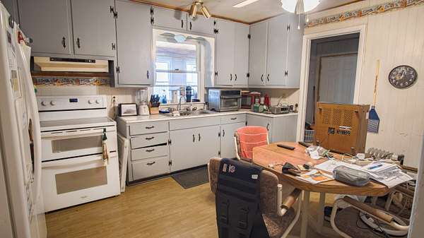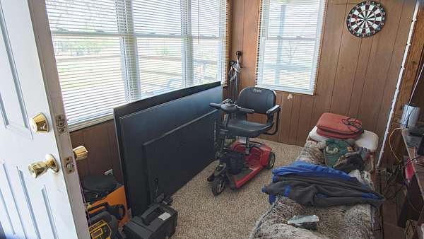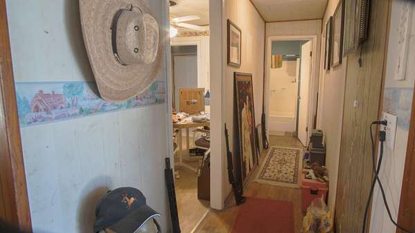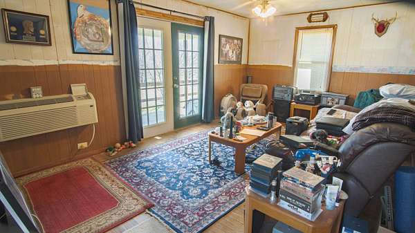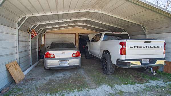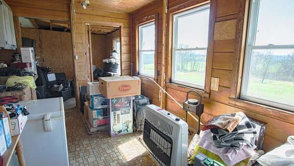 This charming older home sits atop 5.5 acres, which contains a nice mixed variety of grass and trees. Home has a 2 car garage, with an extended 2 more car carport for 4 covered parking spaces! home features a veranda porch that wraps around the home to relax in nature! Inside the home you enter a large living room with a hallway that leads to a large bedroom and bathroom at the end of the hallway. To your left you will find a cozy kitchen with access to your laundry room, sun room as well as your built in storm shelter which houses a home wood burning furnace! The sun room is plumbed for another bathroom, and could easily finish up into another bedroom and a bathroom! to make this home a 2 bed 2 bath! home also has a 2nd well on site as well as a large storage building next to the home!