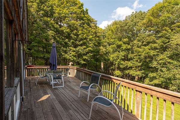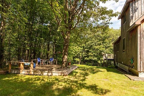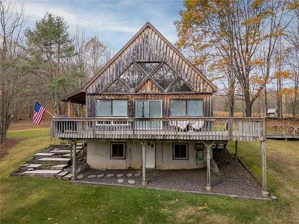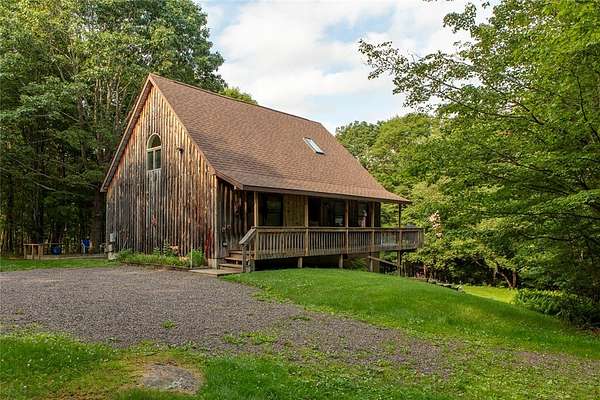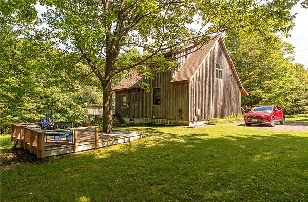 Nestled on picturesque Bramley Mountain Road in the heart of Bovina, this turnkey contemporary chalet offers the perfect balance of modern comfort and Catskills charm. Built in 1995 and meticulously maintained, the home spans just under 2,000 square feet with an additional walk-out basement level that expands the living potential. Inside, you'll find 2 bedrooms, 2 full bathrooms, and an abundance of closet space throughout. The open and inviting layout is designed for easy living, whether you're unwinding on a quiet weekend or entertaining guests. The bright lower level includes a laundry area and plenty of room to create additional living, office, or recreation space all with direct access to the expansive lawn. A large wraparound deck extends the living space outdoors, perfect for morning coffee, evening dinners under the stars, or simply taking in the peace and privacy of the surrounding landscape. Set on a private parcel embraced by nature, this property embodies cozy retreat vibes while remaining completely move-in ready. Whether as a full-time residence or a weekend escape, 2074 Bramley Mountain Road delivers peace, privacy, and effortless Catskills living in Delaware County.