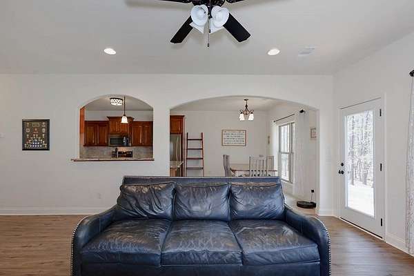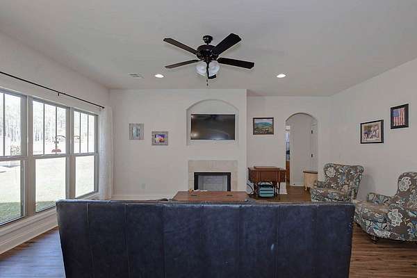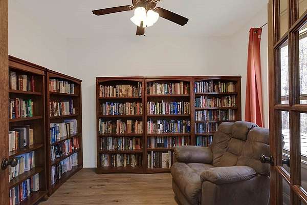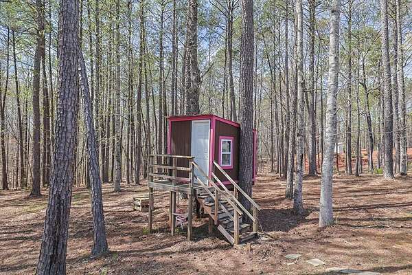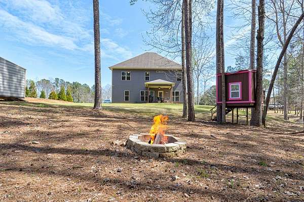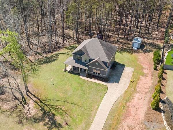GROW YOUR OWN VEGETABLES & ENJOY COUNTRY LIVING while embracing the hobby farm lifestyle on this beautiful 4+ acre property in Hamilton, Harris County! This Craftsman-style two-story home offers 2,838 sq. ft. of thoughtfully designed living space, complete with a charming partial wraparound porch. Inside, you'll find 4 spacious bedrooms and 3 full baths, including a bedroom and full bath on the main level-ideal for guests or added convenience. The welcoming family room features a cozy fireplace and flows into an open floor plan perfect for both everyday living and entertaining. The custom kitchen offers quality cabinetry, ample workspace, a bright breakfast area, and is complemented by a separate formal dining room-perfect for hosting gatherings. The large master en suite is a true retreat, complete with a private library or office area. Step outside to enjoy the peaceful setting with a covered rear patio, playhouse, firepit area, and storage shed. The front of the property showcases a fruit orchard and raised garden beds, perfect for gardening enthusiasts. A long driveway leads to a double garage, providing both privacy and a warm, country-style feel.