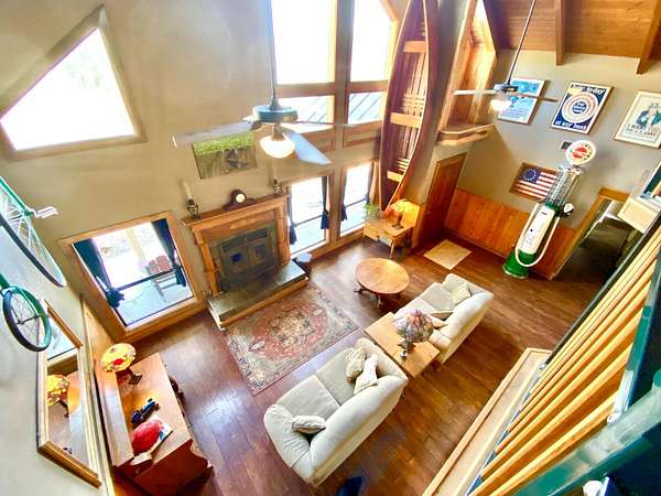 This lakeview home features three bedrooms and two full baths. A game loft overlooks the living room and wood burning fireplace with insert. A chef's kitchen includes a JennAire surface mount cook stove with six full burners and griddle plus a microwave and wine cooler. A KitchenAide double oven and double door refrigerator rounds out the kitchen ware. The seller has also just completed a new water purification system. Three bedrooms on the ground floor as is the hall bathroom. The hall bath includes a jetted tub and over-sized shower. Granite sink and custom wood cabinetry and woodwork finish it off. The 1660 sq/ft outbuilding measures 48 feet across and will support storage for three vehicles together with a 22-foot boat. If you don't have a boat, now is the chance to get one. It is a fully finished building with black and white tile on the main floor and 40 feet of storage along the west wall. Upstairs is a 16'x28' utility room that has been used as an extras bedroom, media room, or office space. It is WiFi equipped. There is 220v for EV charging in both the lower and upper garage. There is also a half bath on the ground floor. Parking space for motorhome on concrete. Both the main home and outbuilding have a metal roof with Hardi Plank siding and four new garage doors. The owned 24 solar panels provide power and the annual tru-up for usage last year was a total of $70. That is less than $5.25/month. This home has over 1400 square feet of exterior redwood decking (w/steel powder coated posts) that has been recently treated. There is also a 2200 GENERAC whole house emergency propane powered backup available if needed.
