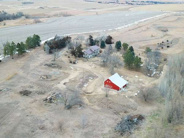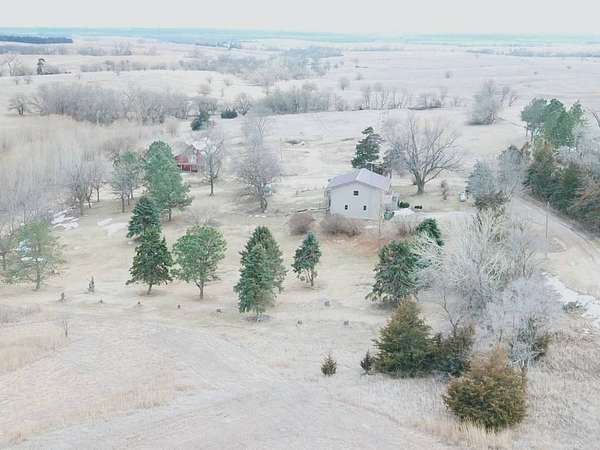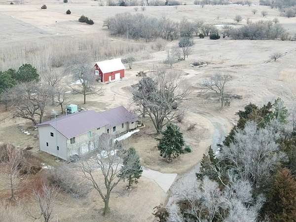 This unique property located about 4 miles south of Superior, Nebraska has so much to offer - country living in the main house and the potential for income generation in the hunting/vacation lodge in the barn that comes fully furnished to sleep 12! This property will include 10 acres of country to enjoy. A survey will determine the exact boundary. The main house boasts more than 4 bedrooms, 4 baths, wood floors and balconies off of 3 bedrooms to relax and enjoy the scenic view. The large master bedroom features a vaulted ceiling with wood beam, double closets and an ensuite bath. Downstairs, a family room with patio doors that lead outside is waiting for you to finish as you desire. Also down there are 2 non-conforming bedrooms and a bathroom, Venture down to the barn and you'll find heated floors, a laundry room, kitchen, wood stove, dedicated work area, and multiple storage areas on the main floor. The upper living area comfortably sleeps 12, making it an ideal retreat for guests or a lucrative rental opportunity. More details for the main house: Built 1936 with additions and renovations through the years; Ranch style 1 1/2 story home; 2116 Sq Ft Living area; 3-car garage with workshop area and wood burning stove; New roof in 2026; Generator; Rural Water, Septic system; Propane tank; More details for the barn: Remodeled inside and out in 2012-2014; Fully insulated with spray foam insulation - upstairs and main floor- walls & ceiling; Heated floor; Wood burning stove and mini-split (upstairs and main floor); Propane tank; Storage room for tools; Back room floor not heated - planned to be a meat processing room with sink, etc.; Living area upstairs includes kitchen, bathroom, living area, dining area, and sleeping loft for 12; Comes turnkey and fully furnished for your convenience; Patio doors lead to deck to enjoy the views. Whether you're looking for a peaceful retreat, a place to entertain, or a functional space for work and play, this country property has it all! Conveniently located just 7 miles to Lovewell Reservoir for your fishing and hunting friends!