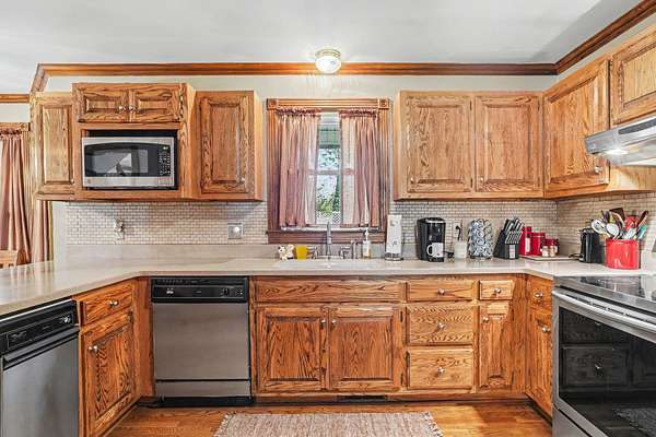 - Dishwasher, Electric Oven, Electric Range, Microwave, Stainless Steel Appliance(s), Trash Compactor