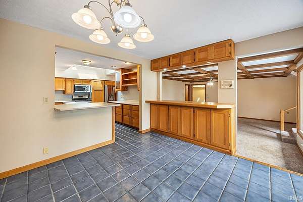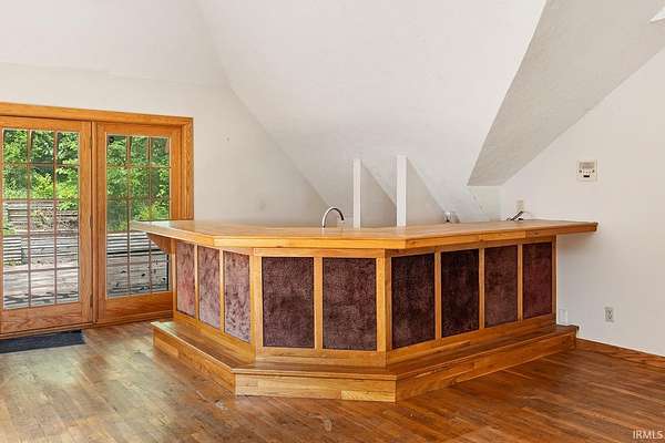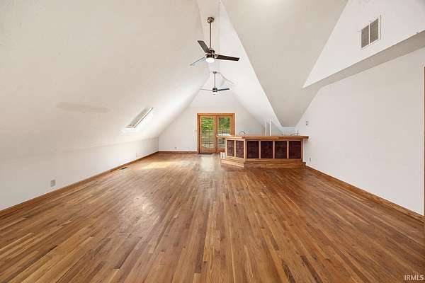 Step into this one-of-a-kind, custom-built 4-bedroom home that blends character, functionality, and space for entertaining. From the moment you walk in, you'll appreciate the beautiful woodwork, real hardwood floors, and abundant natural light streaming through multiple skylights across both levels. The main floor features a spacious primary suite with a walk-through vanity and closet that opens into a cozy den--perfect for a home office or reading nook--adjoining a sunken living room with a charming gas fireplace. Upstairs, you'll find three generously sized bedrooms, each with its own walk-in closet, along with a large multi-purpose room ideal for entertaining. This expansive space includes a full wet bar and electric cooktop and opens directly to a gorgeous wooden deck with a gazebo. Step down to the driveway or head across to the nearby outbuilding for additional storage or hobby space. Set on a large corner lot just minutes from Delphi, this home offers the perfect balance of privacy and convenience. Come experience all this home has to offer today.