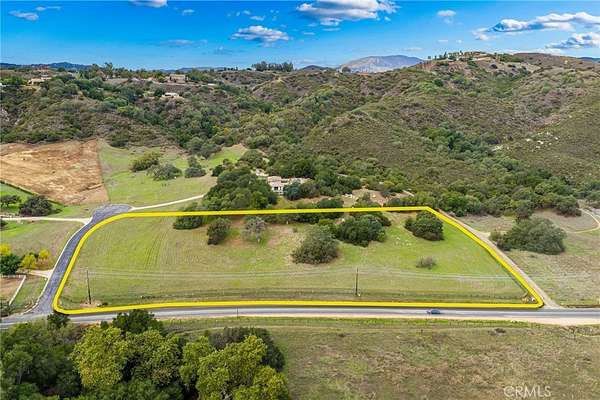 Welcome to 20750 Burl Oaks Ct.--partially flat with a gentle slope, and nearly entirely useable, approximately 5-acre corner lot surrounded by natural beauty, paved roads, and a small private six-property association in the sought-after Tenaja/Santa Rosa Plateau region of West Murrieta just above La Cresta. This rare, exceptional parcel sits just across from the iconic Santa Rosa Plateau Ecological Reserve and within walking distance of the South Trailhead, offering direct access to miles of renowned horseback riding and mountain-biking trails.
