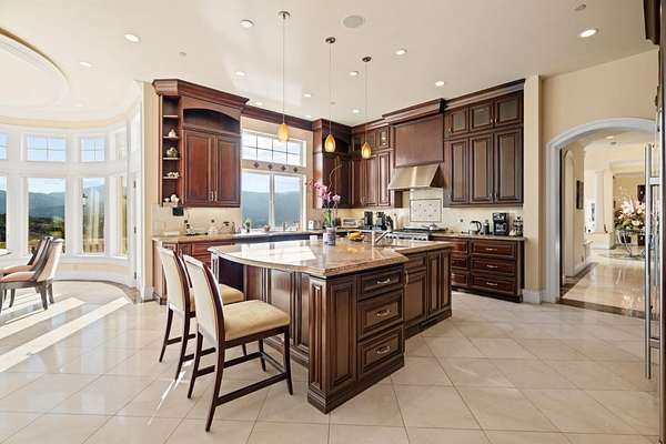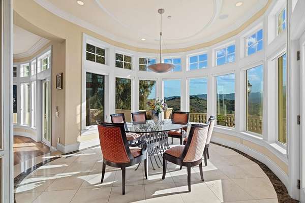 Stunning Mediterranean Estate with phenomenal views offers an elegant and luxurious lifestyle. The resort style property is situated on 2.3 acres providing privacy along with amazing views of Almaden Valley, Santa Cruz Mtns and Mount Umnhum. The Grand Foyer with 25 ft ceilings and magnificent stained glass dome welcomes you into the home. Impressive design and construction details are abundant throughout the home. 120 windows drench the home with natural light. Five wonderful en-suite bedrooms with two of the bedrooms on the main level. Desirable open concept kitchen/family room with access to bar area and outdoor kitchen. An elevator can take you from the 1,076 sq ft garage to the main level and upper level. The Primary Suite is both spacious and luxurious. The home offers an intelligent floor plan that includes a well placed private office, huge theater room, wine cellar/tasting room with 700+ sq ft of storage. Wonderful wrap around tile terraces surround the property. The welcoming Infinity Edge pool is situated next to a 508 sq ft pool house. Front area of the property with a gazebo offers plenty of space for bocci, badminton and room for a potential pickleball pavilion. Two solar panel systems for home and pool along with multiple Tesla batteries. 50 Cabernet Franc vines.