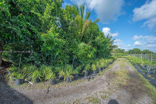 Great Opportunity to Build your Dream Home on 5 Acres of Land in the heart of the Redlands in Homestead Florida. It also presents a great opportunity to re-zone and build 5 one acre Estates to sell for Developers. Currently is a full blown well established plant nursery business being sold without the inventory, but can be sold with all the inventory as well at a different price. This plant nursery is fully equipped with a full irrigation system, wells and 2 big diesel pumps and has a variety of fruit trees on site. It also has 2 small buildings, one newly constructed being used as the office and another a small apartment. Located 5 minutes from Homestead Airport, 45 minutes from Miami International Airport, 20 minutes from the Florida Everglades and the Florida Keys. Please contact me with any questions or to schedule a showing.