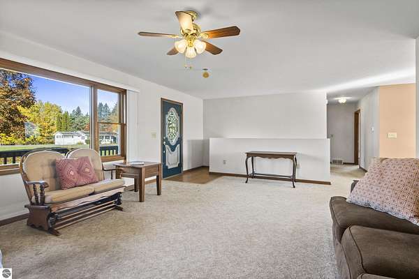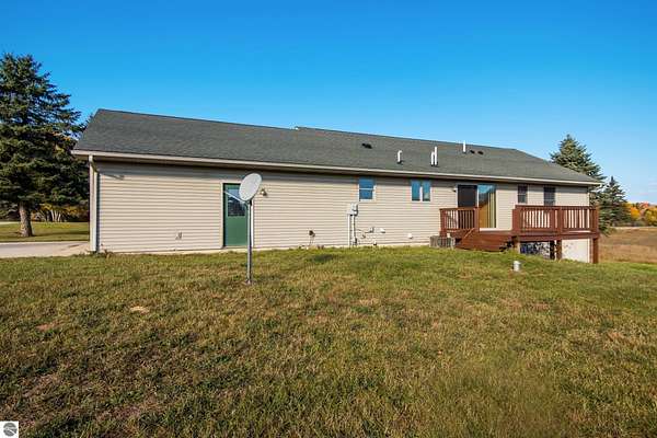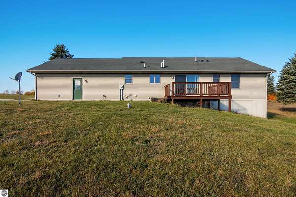 Versatile living space with 5 Acres -This 3 bedroom, 2 1/2 bath home features an open concept living room, dining area, and kitchen. The kitchen has a large entry closet, pantry, and breakfast bar. The two bedrooms on the main floor each have large closets, with the primary bedroom offering a private bathroom. The basement includes a sizable third bedroom, an additional living area with a walkout feature, and a half bath. The generous basement has a large unfinished room providing limitless possibilities. Enjoy the covered front porch and watch the wildlife from a large back deck. The attached two-car garage has a finished interior. The property's location is ideal, just a couple of miles from US 131, offering convenient access for the commute and travel. The land provides space for gardening, room for your pets, and recreational play. The recreational options in the area include golfing, nearby lakes and rivers, and ATV trails. Whether hosting friends, raising a family, or savoring quiet evenings at home, this residence provides a warm country lifestyle.
