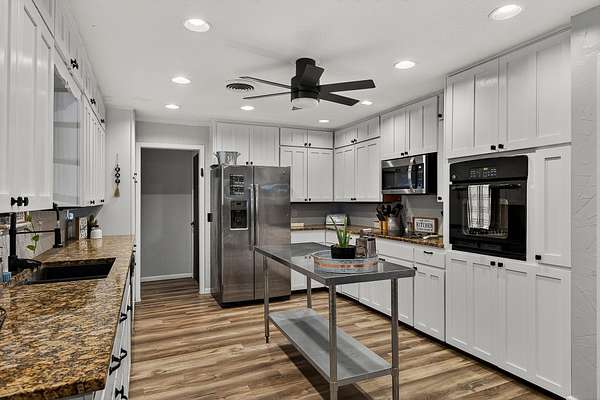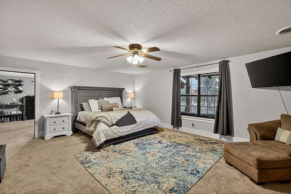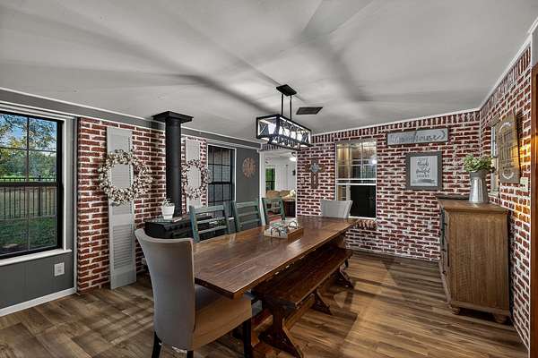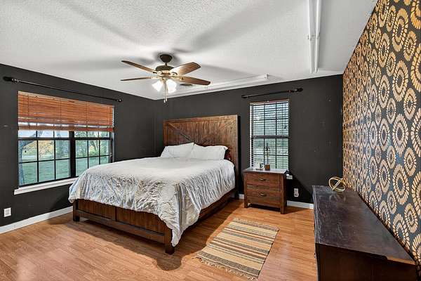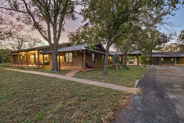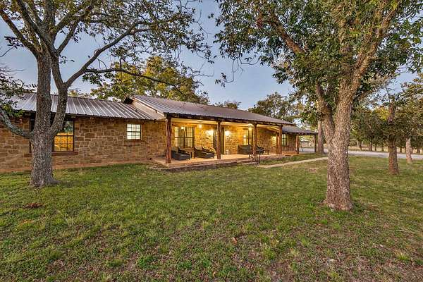 Welcome to an outstanding unrestricted estate with a wildlife exemption for songbirds, just minutes from the charming town of Burnet, TX. This beautiful property offers endless potential with over 60 pecan trees, 3 pear, 4 walnut, and 2 jujube trees. Two scenic ponds sit at the front corners of the land, naturally fed by Hamilton Creek, plus a smaller pond near the chicken coop originally designed for ducks. The main home features 4 bedrooms, 2.5 baths, two offices, two living areas, a formal dining room, a spacious kitchen, and a laundry room. A bunkhouse behind the main home provides ideal guest or multi-generational space. Both the main home and bunkhouse run on solar during the day and PEC power at night, with panels positioned near the coop and pond. The primary suite offers a decorative light-up log fireplace, while the dining room includes a classic Earth Stove wood-burning unit. The guest house includes 3 bedrooms, 1 bath, and an open kitchen-living layout with a patio for outdoor enjoyment. "The Heart," the 3rd dwelling, is currently used as a place of worship and includes a studio room, bedroom, full bath, and open living space with a back patio overlooking the property. Attached to "The Heart" is a large shop perfect for hobbies, storage, or a home-based business. This rare, unrestricted property blends flexibility,functionality, and natural beauty--ideal for investors, families, or those seeking a live-work setup. Don't miss this incredible opportunity to own a unique piece of Texas paradise!