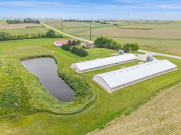 Est $8,202/moA quality farm that has it allocated on pavement. 59 Acres of which approximately 45 tillable with an average CSR of 70. Single Family Split home with 3 BR 2 BA, 2 Large 50x200 Hog Finishing Buildings w/ bulk bins and a lagoon, 6 Wells on the property, rural water access and a large immaculate insulated, heated, and finished 60x120 shop complete with a pit area. This property has a lot to offer as a beginning farm, addition to your existing ground.