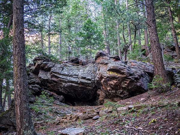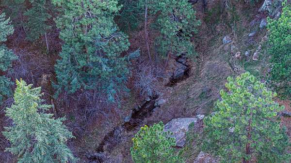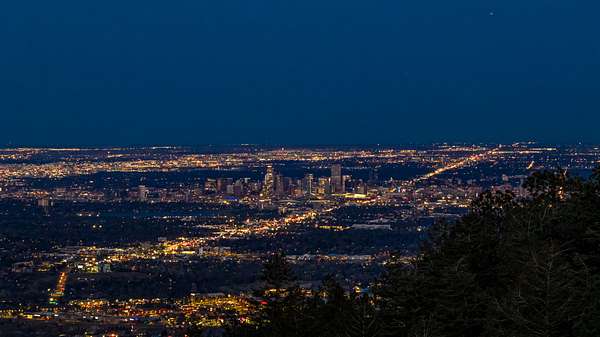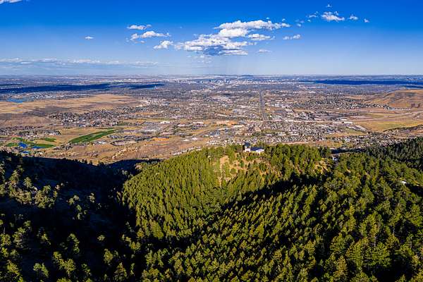 12.32 acres of wooded mountain terrain on Lookout Mountain in unincorporated Jefferson County. The property occupies a natural cove facing east toward the Denver metro, with views of the city and plains beyond.