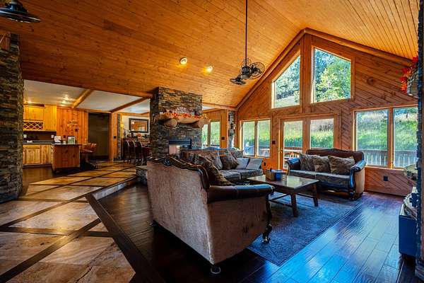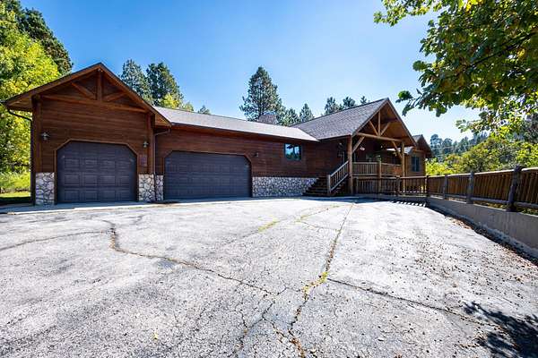 For more information, please contact listing agents Scot Munro 605-641-6482 or Heath Gran 605-209-2052 with Great Peaks Realty. A turn-key property nestled in the Shirt Tail Gulch S/D off of Boulder Canyon in The Black Hills. Just a few short minutes from Historic Downtown Deadwood! Nice paved roads all the way up to the front door to this beautiful sanctuary. Breathtaking 3.02+/- wooded acres with great privacy. The HOA has a nearby pond that you can overlook right from your front door! About 1 mile from Historic Deadwood and approx. 13 miles to Sturgis, SD! Luxury finishes, warm tones, unique lighting fixtures, and beautiful stone & log accents throughout allow this cabin to make you feel right at home! 4 bedrooms, 3 bathrooms, huge 3 car heated garage, home is approximately 3,664 SQFT! Master suite is spacious and functional with remodeled bathroom featuring tiled and stone finishes, dual vessel sinks, old west-style vanities, and a walk-in shower with private backyard views. The 2 sided fire place in living and dining room allow you to entertain with the open concept and nice flow from room to room. Functional kitchen with large pantry offers tons of storage and room to move around while you cook! The garage is 34x26 w/ additional storage room. The basement is walkout and leads you to the free standing hot tub. Sit out on the covered/open decks to enjoy the lovely evenings. Tons of summer and winter sports to enjoy very close by if desired!